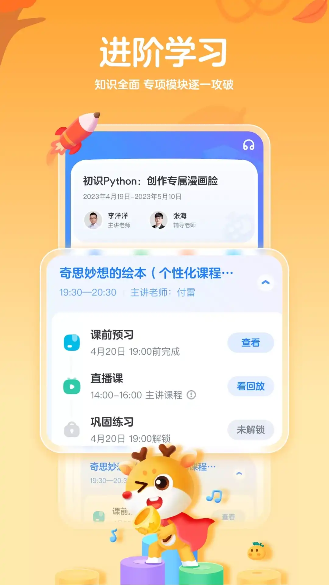 小火箭编程,是编程猫旗下的在线编程应用,手机就能学编程!小火箭编程将编程知识融入剧情故事,孩子在趣味横生的课堂中学习编程、锻炼思维。 【随时随地学编程】 用手机/平板就能完成编程创作,随时随地学编程 【剧情化趣味课堂】 课堂知识点融入编程猫原创动漫剧情,寓教于乐 【班主任贴心服务】 非自学课程将配备班主任进行辅导,学习编程不孤单