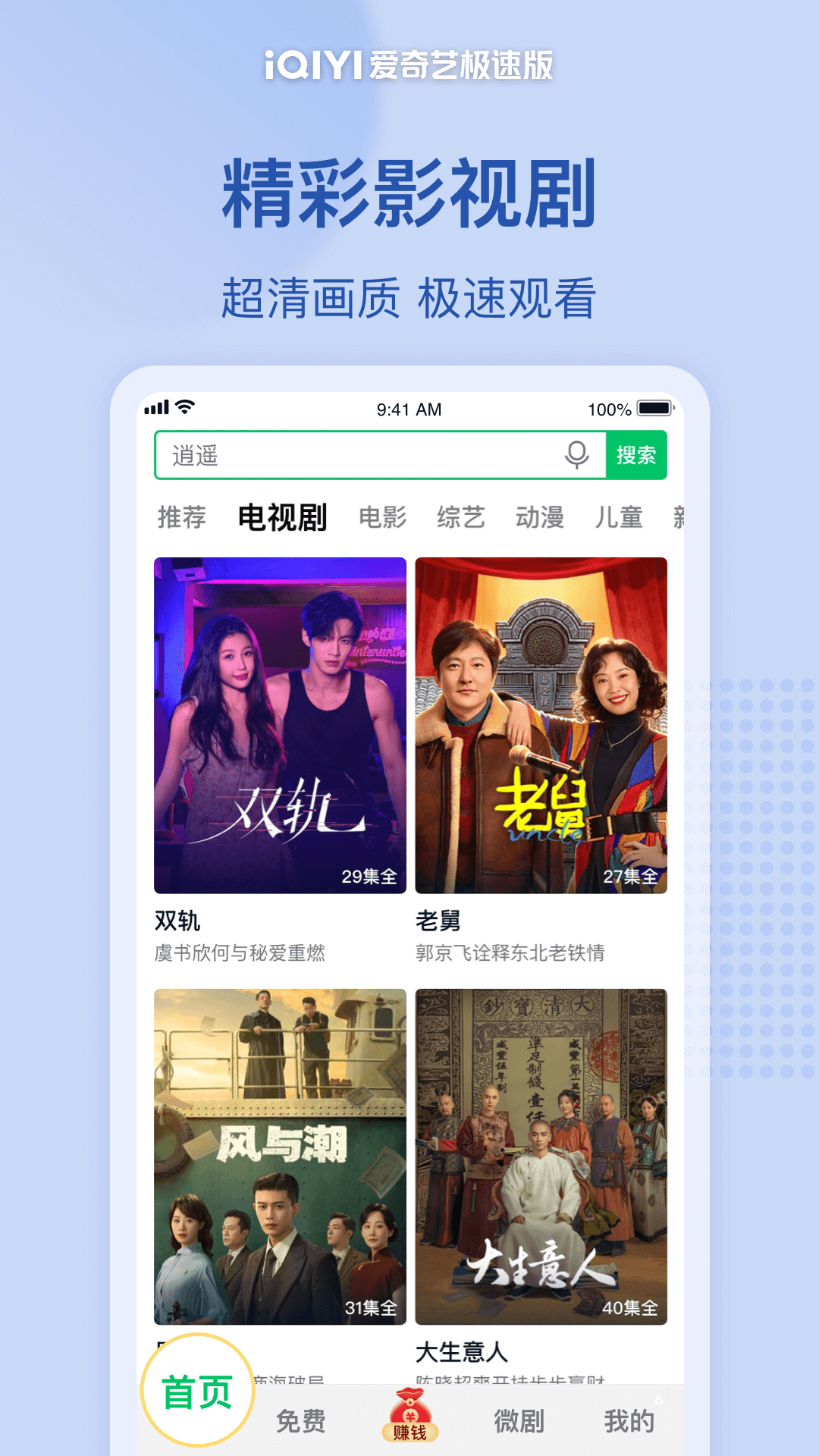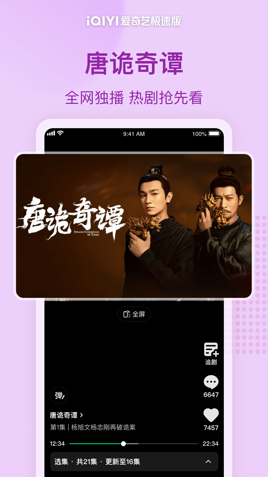 爱奇艺官方出品的APP,覆盖爱奇艺全部内容,功能简洁,内存占用少,会员更实惠,还能边看视频边赚金币<br>【更轻】安装包小,内存占用少,任何手机都能轻松运行<br>【更快】启动速度快,使用简单,视频播放更加流畅<br>【内容全】畅享3万多部热门影视和综艺,还有上万部微剧免费看<br>【更实惠】高性价比的基础会员,内容全,价格低,有广告<br>【能提现】边看视频边赚金币,现金提现秒到账,还能免费兑会员<br>【热播剧集】<br>《逍遥》谭松韵侯明昊仙侠甜恋<br>《唐诡奇谭》杨旭文杨志刚再破诡案<br>《双轨》虞书欣何与秘爱重燃<br>《老舅》郭京飞诠释东北老铁情<br>【超燃电影】<br>《731》姜武平民视角直击暴行<br>《刺杀小说家2》邓超董子健热血开战<br>《运钞大劫案》包贝尔自制武器复仇<br>《捕风追影》成龙梁家辉硬核对打<br>【新鲜综艺】<br>《宇宙闪烁请注意》高能量熟人局<br>《奔跑吧天路篇》跑男团开启高原之旅<br>《一路繁花第2季》繁花再绽向阳而行<br>《泰甜啦》“双轨”高甜番外篇<br>【热门短剧】<br>《惹心》陈添祥演绎邪魅男狐<br>《唐诡奇谭之长安县尉》韦韬与守寡女医共破案<br>《他比子弹温柔》偷他一块表掀翻整个城<br>《非婚不可》契约替嫁,先婚后爱<br>《桃花烬》一人分饰两角超爽复仇<br>《狼烟枕红妆》这届和亲公主路子太野<br>《封总,太太的离婚生效了》结婚七年她终于死心了<br><br><br><br><br> <br>【温馨提示】<br>如遇到问题,请打开爱奇艺极速版APP-我的-帮助与反馈,点击页面下方【意见反馈】进行反馈。若您的问题仍末解决,可在"我的-关于我们-联系我们- 在线客服" 进一步反馈或直接拨打客服电话(400-923-7171),您的反馈是对我们改善服务很大的帮助!