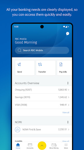 RBC Mobile* 应用程序将移动银行业务提升到一个新的水平。日常银行业务总是很方便,但我们的应用程序可以帮助您更轻松地管理资金。我们新颖直观的设计让您可以轻松访问银行应用程序所期望的一切:账户余额、转账、账单支付、支票存款、ATM 位置等。但我们并没有就此止步。我们通过改进的导航让找到每个功能变得更加容易。我们的操作按钮和管理菜单采用最重要的工具,并将它们放在您的指尖。最好的部分?这些菜单是针对每个页面量身定制的。<br><br>NOMI 是 RBC 移动应用程序独有的,在应用程序体验中发挥着重要作用。 NOMI Insights 通过个性化提示和支出趋势帮助您管理日常财务。 NOMI Find & Save 通过查看您的消费习惯来找到一点额外的钱并为您存起来,从而帮助您轻松存钱 – 这样您就不必这样做。<br><br>我们知道您会喜欢 RBC 移动应用程序提供的一切,我们希望您在使用它时感到安全可靠。从登录开始,我们就为您提供了最新的生物识别技术(例如指纹),因此您可以安全地访问该应用程序,而无需记住密码。如果您丢失了信用卡,请使用该应用程序暂时锁定您的卡。<br><br>-----<br>隐私 RBC 根据您与我们之间的账户协议以及我们的隐私政策(可在以下网址获取)收集、使用和披露您提供给我们的信息:<br><br>http://www.rbc.com/privacysecurity/ca/our-privacy-principles.html。<br><br>了解有关 RBC 数字渠道隐私的更多信息,请访问 http://www.rbc.com/privacysecurity/ca/online-privacy.html。<br><br>RBC 移动应用程序可能需要访问设备服务才能实现某些功能,例如查找附近的 RBC Royal Bank® 分行。有关功能的完整列表以及从设备中删除 RBC Mobile 应用程序的帮助,请查看 https://www.rbcroyalbank.com/ways-to-bank/mobile/rbc-mobile-app/android-permissions.html或者您可以联系 mobile.feedback@rbc.com。<br><br>合法的<br>RBC 不会在加拿大境外销售、推广或以其他方式提供本应用程序中提及的金融服务或产品。如果您不是加拿大皇家银行、RBC Direct Investing Inc. 或 RBC Dominion Securities Inc. 的现有客户,则不应访问此应用程序。<br><br>当您选择安装 RBC Mobile 应用程序时,即表示您同意未来的任何更新或升级。根据您的设备、操作系统或用户启动的设置,这些可能会自动安装。您可以通过从设备上卸载 RBC Mobile 应用程序来撤回您的同意。<br><br>如果您下载 RBC 移动应用程序,您必须查看并遵守 www.rbc.com 法律链接中的条款和条件以及您与任何 RBC 公司之间的所有适用协议,包括:<br><br>- 电子访问协议(加拿大皇家银行个人客户)<br>- 商业账户协议(加拿大皇家银行的商业客户)<br>- 账户操作协议(RBC Direct Investing 客户)<br>- 一般账户协议(RBC Dominion 证券客户)<br><br>*RBC 移动应用程序由以下机构运营:<br><br>加拿大皇家银行<br>约克米尔斯路 10 号3楼<br>安大略省多伦多 M2P 0A2<br>www.rbcroyalbank.com<br>1-800-769-2511<br>mobile.feedback@rbc.com<br><br><br>加拿大皇家银行直接投资公司<br>皇家银行广场<br>200 Bay Street, 北塔, P.O. 75号信箱<br>安大略省多伦多,M5J 2Z5<br>www.rbcdirectinvesting.com<br><br><br>加拿大皇家银行多美年证券公司<br>威灵顿西街155号,17楼<br>安大略省多伦多,M5V 3K7<br>www.rbcwealthmanagement.com<br><br><br>®/™ 加拿大皇家银行的商标。 RBC 和 Royal Bank 是加拿大皇家银行的注册商标。 ‡Android 是 Google LLC 的商标。