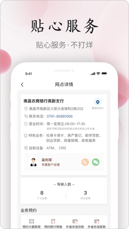 江西农商银行手机银行焕“新”发布,操作更便捷,服务更贴心,守护有保障,满足您多元化服务需求。<br>1.五大频道:全“新”重塑,布局简洁,色彩清爽,轻松找功能,快速办业务。<br>2.A I语音:全“新”解锁,智能交互,“你说我办”,无需手动输入,语音操作即可办。<br>3.消息助手:全“新”触达,业务通知、产品精选、优惠活动、福利助手、管家提示,提供专属服务体验。<br>4.专区服务:全“新”开启,生活缴费、政务民生、信用卡、医保社保、网点服务等特色专区,便捷为您。<br>5.财富体验:全“新”展现,投资持仓、融资额度、资产负债,您的财富一目了然。<br>6.主题定制:全“新”推出,二十四节气、节日、生日等几十款不同主题样式,自由切换,让您手机银行不一样。<br>7.长者版:全“新”关怀,更大字号,布局简洁,常用功能一览无余,客服“一键帮”,交易语音播报,让您更暖心。<br>8.安全中心:全“新”升级,常用设备,人脸、指纹认证等多重检测防护,守好您的钱袋子。充分尊重和保护您的隐私,授权内容清晰透明。