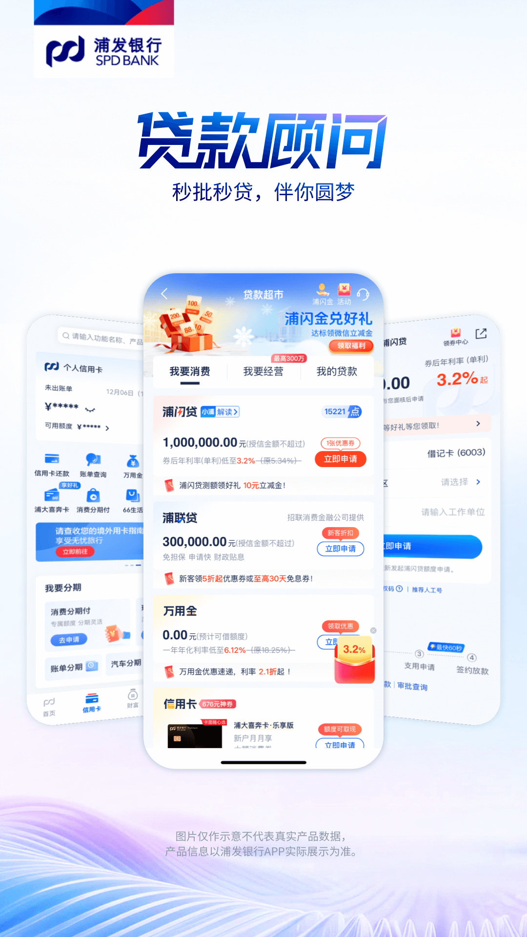 伙伴·共进,浦发银行APP焕新升级! 【做你的财富知己】 1-慧选:理财、基金、存款全品类覆盖!推出慧选矩阵和榜单,实现轻松选、一键投。 2-慧伴:7*24小时财富管家,市场热点、待办事项、持仓分析、投资机会一手掌握。 3-慧诊:四步法资产全面规划,深度持仓产品诊断,科学配置资产,财富稳健增值。 【做你的贷款顾问】 1-贷款超市:消费、置业、经营贷一站式配齐!贷款超市随心选,匹配你的每笔资金规划。 2-优惠权益:政府贴息+利息优惠双重福利,低息省钱更划算。 3-信用卡:聚合双卡权益,融合全能积分等32项功能,一个APP搞定信用卡全场景需求。 【做你的生活搭子】 1-卓信V+:焕新权益礼,达标享好礼,月月有惊喜。 2-代发专区:融合企业人财事管理,为企业员工提供工资查看、签到、请假、OA、报销及专属权益等非金融一站式服务。 3-便民服务:涵盖生活缴费、医疗健康、文娱出行、购物消费,多场景需求一屏直达。