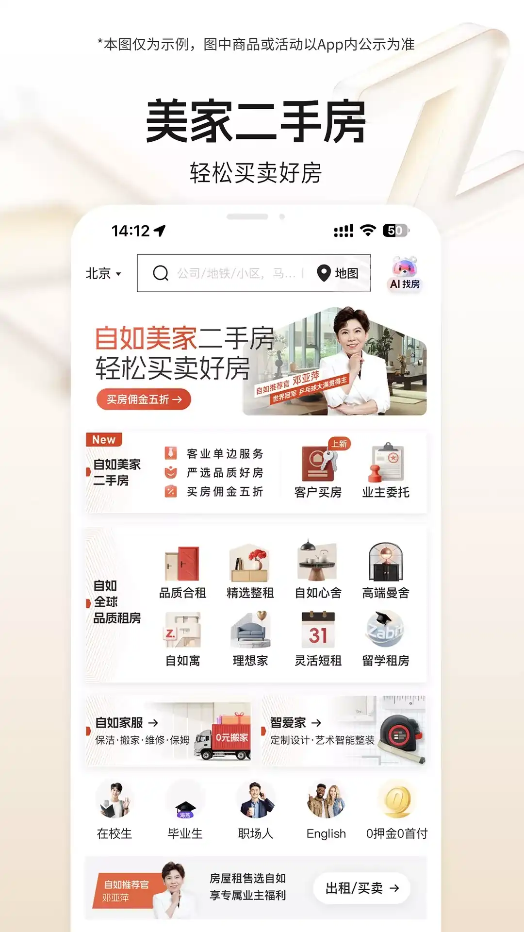 自如,做正确而美好的事 自如是一家提供高品质居住生活服务的国际化科技公司,面对国内用户,自如提供包含房屋租赁、二手房买卖、房屋装修、家庭服务等业务,拥有自如租房、自如美家二手房、智爱家、自如家服等业务品牌。面对国际用户,自如提供海外租房业务,拥有自如比邻ZABIT品牌。 【选择自如App,你可以】 自如租房:品质租房选自如,专业出租选自如 自如租房是中国领先的机构化住房租赁平台,业务开始于2011年,目前管理房源近100万间,获得近百万业主、500万次租客的选择。发展至今,自如业务已覆盖全球30余个城市。自如租房旗下拥有包括合租、整租、心舍、曼舍等分散式居住产品,自如寓、自如里等集中式居住产品。 自如美家二手房:轻松买卖好房 自如美家二手房是自如2025年初推出的房屋交易全新模式,以客业单边服务,严选品质好房,买房佣金五折让房屋买卖更轻松。通过焕新好房、清水好房、心舍好房三个产品,结合智能技术整合的柔性设计与交付供应链,让业主售卖的房子更好、更美、更智能。客户也不仅仅是购买一套二手房,而是轻松拥有一个美好新家。 智爱家:产品化定制设计智能整装 智爱家是自如推出的产品化定制设计艺术智能整装品牌,成立于2022年,愿景是为千万家庭创享艺术生活,智爱新家。智爱家以智爱居住产品、灵之全屋智能、智爱设计工作室、18001全屋智造、挚爱心服务、深呼吸2.0六大能力服务于每个家庭。 自如家服:专业服务、幸福到家 自如家服作为行业领先的家庭服务平台,成立于2015年,依托“家福卡”会员服务体系,通过标准化服务重塑行业标杆,为千万家庭提供搬家、保洁、清洗、维修、保姆、收纳等六大品类超200项生活服务,累计服务订单量突破1亿单,持续领跑生活服务行业。 自如比邻ZABIT:留学租房,就上自如比邻 自如比邻ZABIT是自如旗下国际租房平台,致力于成为全球用户首选的租住生活服务平台,为全球用户提供安全、放心、有品质、超越期望服务的家,2024年5月20日成立至今,已与超过200家境外公寓品牌方合作,覆盖超过100万间房源。