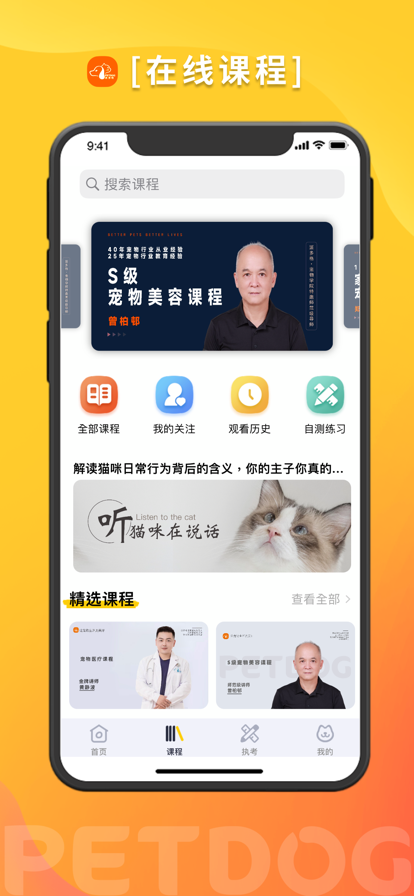 派多宠物在线课程 1.为宠物行业从业人员提供宠物美容、宠物训导、宠物洗护、专业医疗、宠物护理、心理行为等专业知识培训,从基础理论到实操运用,强化提升个人能力的同时,可获得最新技术的学习。 2.派多格6000家聚集行业内最优秀的宠物门店经营者和各领域专家老师,依托强大的连锁以西,对目标市场深度分析,从门店选址装修、产品陈列、会员接待流程以及门店各项管理经营全面剖析解读,帮助门店实现轻松经营; 派多格宠物在线执考 派多格全国八大宠物技术培训学校,聚焦宠物行业人才培养15年,为行业精准输出从业人员50000名。从丰富的课程项目、专业的师资团队到实操就业学习,让全国的宠物行业从业人员,第一时间了解到线下各专业开课情况、考试情况以及轻松学习与检测。