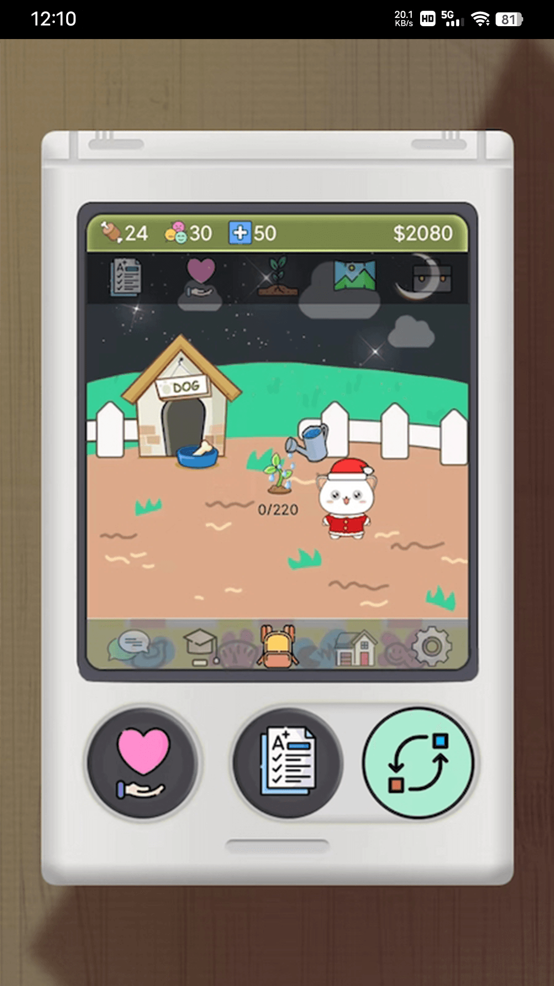 ~来领养你的可爱小宠物吧~^_^~ 成长期:蛋->幼儿->儿童->成年 <br><br>电子宠物机官方 QQ群:579938066 (小伙伴们都在群里呢~快来一起玩~)<br><br>服装券购买需知:卸载应用/重置手表 后购买的衣服和服装券会失效!<br><br>宠物机玩法详细介绍:<br><br>*操作技巧:转动表冠可以选择菜单,然后点击屏幕中间可以进入该菜单<br><br>*修改宠物名称:点击宠物状态的里面宠物的名字可以唤起改名菜单<br><br>一、宠物照料:<br><br>成长:蛋->幼儿->儿童->成年<br><br>喂食:可以购买食物来喂养宠物。便利店里面有各种食物。<br><br>厕所:清洁宠物有两种方式,打扫客厅和进卫生间。及时带宠物上厕所,才能养成干净可爱的宠物哦。<br><br>洗澡:宠物 脏了后洗澡可以增加心情值。<br><br>睡觉:宠物会在晚上0点开始睡觉,早上8点起床,睡觉的时候不能打扰<br><br>生病:宠物如果饥饿时间持续太久,宠物就会生病,或者可能重病晕倒。 生病之后可以选择“打针”或者“急救”去进行治疗。<br><br>开心:通过洗澡,去公园,去游乐园,旅游,等地方增加开心值。<br><br>二、外出:<br><br>金币∶金币可用于应用内各种消费,比如购买食品、种子、汽车、装修房子。通过打工、旅游、出售农作物、娱乐,可获得金币。<br><br>背包:背包里面有肥料,水壶,植物种子,和可以出售的农作物<br><br>上学:根据学习科目 获得不同等级 学历。<br><br>学历∶幼儿园/低年级/中年级/学者<br><br>工作:宠物成年后才能工作。类型包括∶侍应/快递员/办公室/科学家 可以干的工作和宠物的学历有关。 工作需要消耗一些心情值。<br>侍应:西餐厅服务员 每次获得50元<br>送快递:小镇里送快递,每次获得100元<br>办公室:办公室打工,每次获 150元<br>科学家:实验室工作,每次获 300元<br><br>花园:可以在花园里面种植农作物,种子在背包里面。种植农作物后一定要浇水,用肥料可以让植物提前成熟。<br><br>学校:在学校里面可以进修各种课程<br><br>房子:房子旁边就是车库,买车后可以在车库换车开。旧家具也是放在车库里面。<br><br>服装店:服装店有各种服装,可以通过羊毛+金币购买,部分需要服装券才能购买。<br><br>便利店:用金币购买各种宠物喜欢的食物。<br><br>园艺店:去园艺店可以购买各种植物种子 ,肥料等。<br><br>市场 :可以在市场出售自家种植的农作物<br>汽车店: 目前有3款车型在售,买车后可以大大缩短出行时间<br>家具店:可以在里面购买新的家具,装修大厅,购入电视机后宠物可以看电视