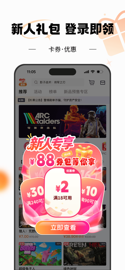超级蒸汽——好游戏,便宜购。 让人人都玩得起好游戏,是我们成立超级蒸汽的初衷。 我们从未停止探索和种草最带劲的游戏,并且致力于分享玩家们的次元生活,同时深入探讨游戏的文化,我们一直相信游戏不止是游戏。 超级蒸汽功能介绍: 1【天天骨折 超值特卖】我们每天提供骨折游戏,没别的就是很便宜很超值。 2【折扣比价 史低还低】超过3个国区的折扣价格对比,详细的游戏信息和玩家真实反馈评价,发售表和安利墙让你想错过任何一款优质大作都难。 3【社区广场 资讯热点】没有无聊的营销号内容,这里入驻的都是真实玩家和懂游戏的优质创作者。纯干货分享内容硬核,评论精彩不废话。 4【福利盲盒 一发入魂】全新盲盒玩法,新人福利多。抽到的游戏不喜欢?还能合成升级! 5【商城集市 买卖自由】商城内除了游戏我们还贴心的提供游戏相关配置硬件,集市挂售系统操作方便自由,一站解决所有。 如有任何问题或建议反馈,你可直接在超级蒸汽App-我的-将问题反馈给我们。 或通过以下方式与我们联系: 官方微博:https://weibo.com/numbani 官方B站:https://space.bilibili.com/34932803 官方微信公众号:Steam超级蒸汽