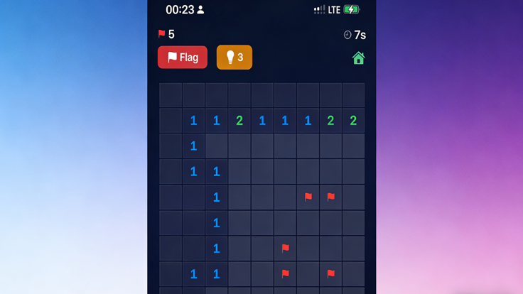 Classic minesweeper reimagined! Uncover safe cells using logic — flag the mines, clear the board. Race the clock across three difficulty tiers!