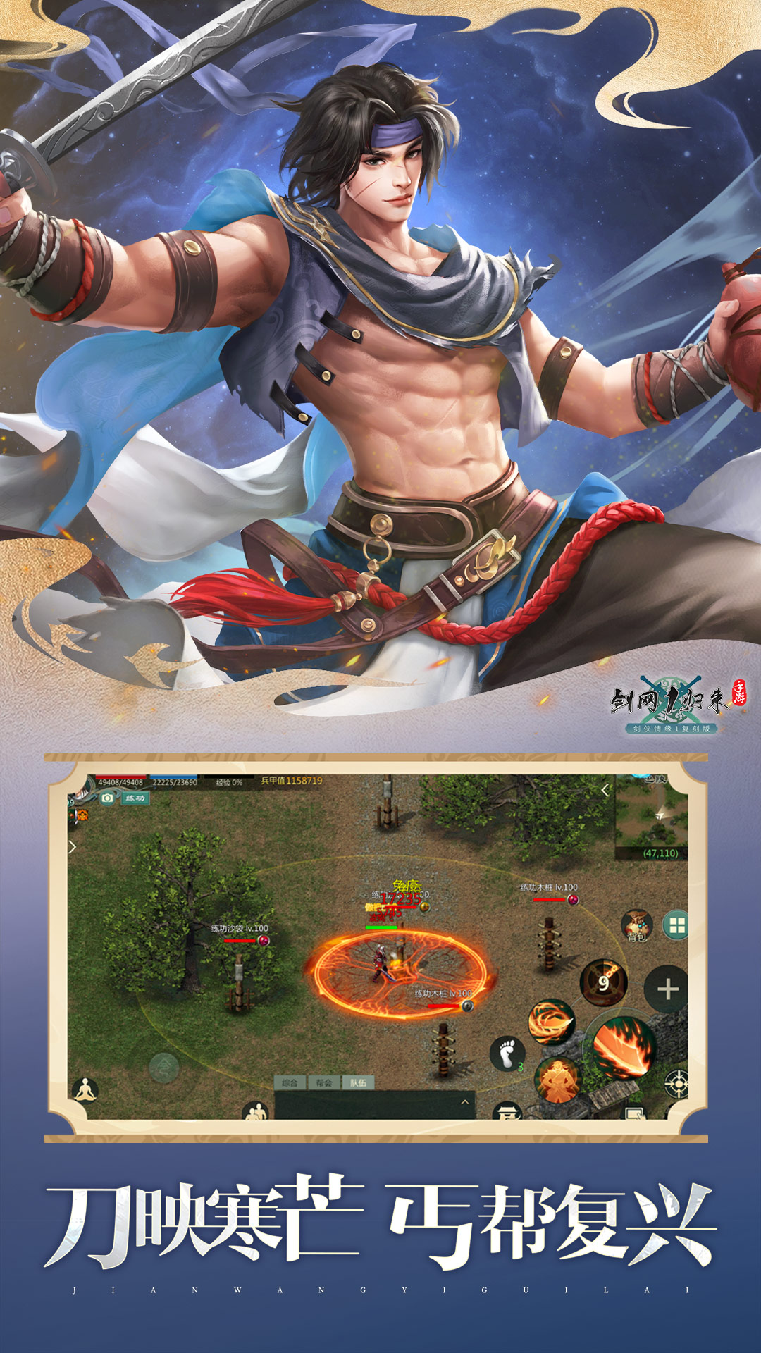《剑网1:归来》是西山居基于《剑侠情缘网络版》端游打造的一款复刻版武侠MMO手游。游戏以南宋的宋金大战为背景,还原18年前端游经典玩法,包含五行相克、挂机烤火、千人热血帮战等亮点。诸位大侠可尽情结交好友,与独孤剑、龙五等大侠煮酒论剑!<br><br>————游戏特色————<br><br>1、《剑侠情缘网络版》经典复刻<br>复刻《剑侠情缘网络版》端游画面玩法,还记得华山赏月、襄阳北约战、桃花源挂机吗?龙五、野叟、独孤剑等经典人物悉数回归,进入游戏,恍若回到当年的热血青春。<br><br>2、新春贺岁 红包家宴<br>春节活动开启,每日签到领取新春限定礼包;帮会成员齐聚帮会领地,共享团圆美食家宴;<br><br>3、自由交易 日进斗金<br>所有掉落装备均不绑定,玩家可以通过摆摊进行售卖,价格全部随心而定。轻松一键上架,金币银票每日如数进账。<br><br>4、绝品装备 两周连送<br>绝品装备,登录即送!是时候叫上帮会兄弟们,枕戈待旦,即日出征,再战临安!<br><br>5、满额返还 强势回归<br>回归专服返还活动开启,入驻返还金币!“钱”途无量的江湖新征程,等你来战!