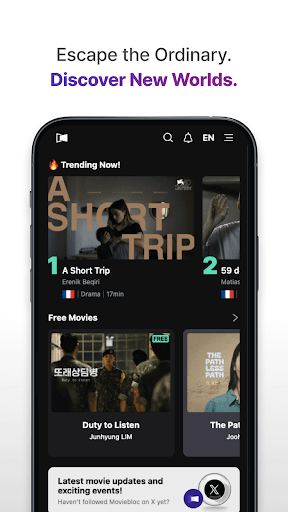 [ 唯在 Moviebloc 开启的特别电影体验 ] <br><br>• 与全球独立电影、短片近距离接触的绝佳选择!<br>• Moviebloc 是一个追求透明回报与公正生态的 Web 3.0 电影平台。<br>• 从纪录片、动画到影展获奖作,为您呈现差异化视听盛宴。<br>• 立即下载 App,跨越时空限制,感受电影魅力!<br><br>[ 主要功能说明 ]<br><br>• Global Film Festival (影展): 与国内外知名影展合作,无需亲临现场,即可高清欣赏最新获奖作。<br>• Curated Library (精选库): 专业编辑严选独立电影清单。在多彩短片中寻找属于您的人生之作。<br>• Interactive Mission (互动任务): 参与每日任务获得“爆米花”,可兑换付费电影观看机会。<br>• MBL-i: Moviebloc 特色服务,可为创作者提供实质性的帮助。<br><br>[ 注意事项 ] <br>• 部分内容可能根据版权所有者的要求停止提供。 <br>• 根据内容提供商的情况,部分内容可能不提供 HD 或 FHD 画质。 <br>• 最大画质视网络环境、合同条件及设备规格而定。 <br><br>• 隐私政策: https://www.moviebloc.com/privacy/zh <br>• 使用条款: https://www.moviebloc.com/terms/view/zh <br><br>联系方式:<br>official@moviebloc.io / +82 070-4484-7100