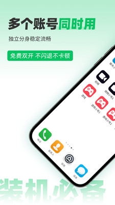 微信分身、微信双开、微信多开等APP分身双开多开软件,兼容安卓16,微信用户实测好用的微信分身版APP! 【免费分身/双开】 →免费支持微信分身、QQ分身、快手分身、抖音等几乎所有应用分身双开; →微信2个账号同时登录,互不影响,感受更多的聊天乐趣; 【无限分身/多开】 →多个微信账号同时登录,轻松切换微信聊天窗口,实时收发多个微信账号消息,轻松管理多个微信账号,提高工作生活效率; →多个光遇账号同时登录,玩大小号不用来回切换,轻松做任务、刷胜率; →多开app类型不受限,只要手机安装的app都能多开,多开个数不限数量,轻松实现自由多开; →强大的多开技术,可多开无数个分身,采用独立内存管理机制,分身运行不占内存,分身再多也不卡顿不延迟; 【安全分身】 →独有的黑科技实现应用/游戏分身; →分身速度更快、分身数量更多,安全稳定流畅分身,让你在使用分身过程中体验到与原版APP一样的使用感。