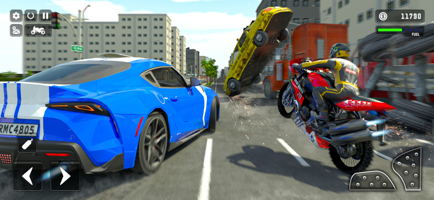 Drive Stunt Bike Simulator 3d brings you the best realistic gaming and bike driving experience. Navigating regular traffic is very important for becoming an expert in this game. You can download this game for free and enjoy it whenever you are bored. Drive Stunt Bike Simulator also includes many bikes, crazy stunts, and other customization options. It is supposed to give you a whole experience of road stunts and thrilling missions. It is a simple but addictive game. Gameplay and Missions: In this bike simulation game, after completing each mission and collecting the coins, you will be promoted to the next level and given the option to upgrade your bike as you see fit. Later in the game, you can also add a full career mode, first-person view perspective, and Real HD visuals to the never-ending bike riding genre. The essence of smooth arcade riding is still present. Ride your bike along the endless roads, overtake like a pro rider, and upgrade and purchase new motorcycles to complete the problematic mission and ride through traffic to earn coins. You can also upgrade your bike and purchase new ones of your taste. This game will challenge you with different missions. With the given instructions, you will have to finish the mission for rewards. In the beginning, there are fourteen missions, each harder than the other. Once you start the game, there's no going back! You want to keep trying new stunts and missions every day. To be the best bike rider, choose the best motorcycle to drive. If you are into bikes or bike riding, then this simulator game is definitely for you. There are a variety of stylish bikes to pick from and specifically-built high-detail mechanisms that are ready to battle in this realistic and challenging bike game. During rush hour, you can control your motorcycle at astonishing speeds! To improve your bike's speed, press the turbo boost button. It's all about having a good time in this Drive Stunt Bike Simulator game! With a range of sports bike models to pick from, you can outdo your expectations when it comes to executing feats. Get ready to show off your riding and racing skills. It also comes with various bikes, ranging in price from the cheapest with a slower engine to the most expensive with a quicker engine. Drive stunt bike simulator takes care of everything; all you have to do is complete the assigned objective in the allotted time, and you're ready to move on to the next super stunt bike. Features: • Gorgeous graphics • Excellent sound effects • Perfect control settings • Crazy stunts • Various challenges Although not many games have this feature, the Drive stunt bike simulator offers the advantage of having multiple camera viewpoints. Some players are used to playing games with a closer look, and some players play like how generally the game is put up. Both are available in the Drive stunt bike simulator 3d game. Get ready to experience the best freestyle, endless stunt driving game. Playing for a new offline bike game on mega ramp tracks should be nothing but fun. This fantastic game is quite similar to racing games on roads. If you are bored and can't seem to find a suitable bike riding game, then don't hesitate to play the most realistic bike simulation game now. You can enjoy yourself as a motorbike rider and challenge your brain with new missions. Join the drive stunt bike simulator 3d game. Go on an adventurous journey What are you waiting for? Hurry up and download the free Drive Stunt Bike Simulator game now. Become the world's fastest motorcycle rider by riding your favorite bike and sharing your victories with friends as well. Show crazy bike driving skills and perform crazy stunts!