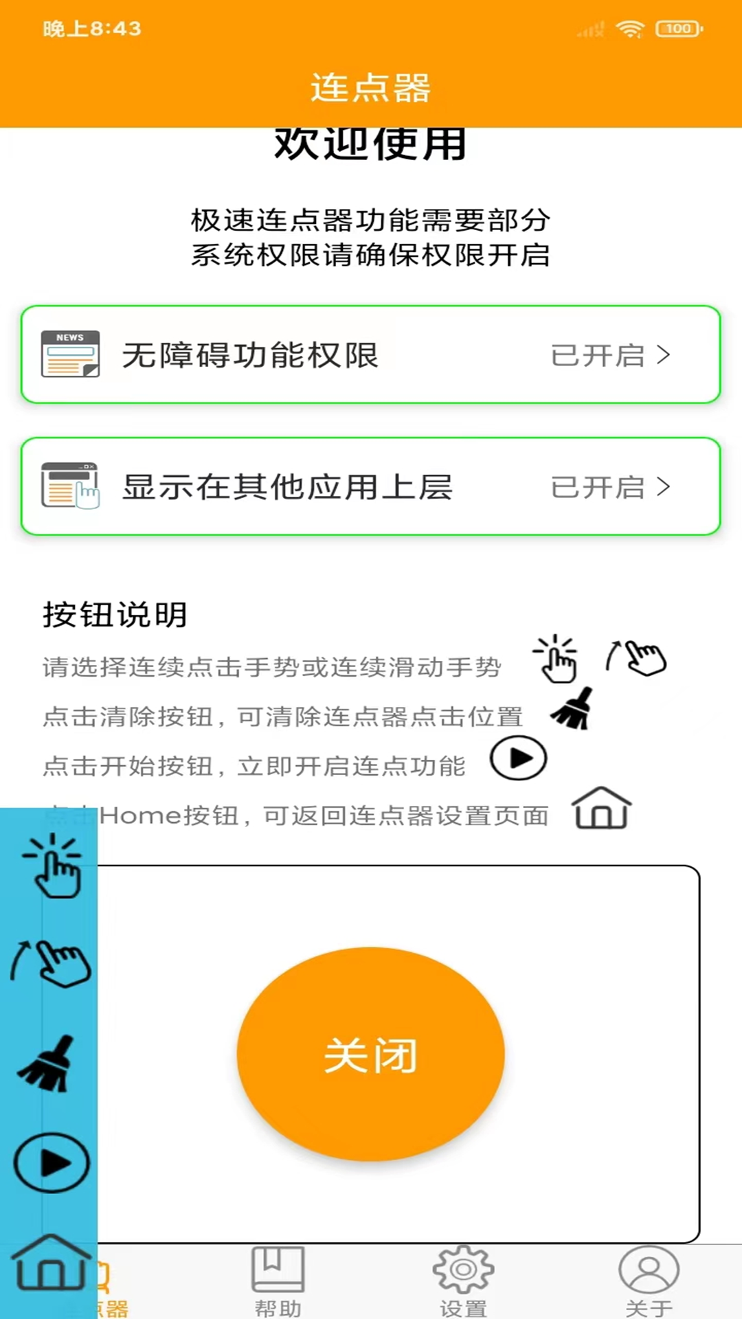 免费连点器为您提供屏幕连续点击和滑动功能,采用高级技术脚本实现,连点器位于所有应用上方,您可以随心设置点击间隔时间,享受极速点击效果,还可以连续在不同方向上实现滑动效果,教程直观简洁,快来下载使用吧!