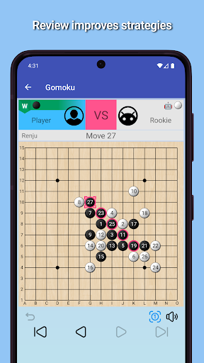 提升您的五子棋体验<br>正在 Google Play 上寻找完美的五子棋游戏吗? 您的搜索到此结束! 这款五子棋应用程序提供广泛的功能,例如可调节的难度级别和可定制的第一步,旨在提供您一直渴望的最丰富和最具挑战性的体验。<br><br>🌟特点:<br>👾 所有技能组的可调整 AI 难度级别<br><br>我们的五子棋游戏具有三种不同的 AI 难度设置(初级、中级和专家),可满足各种技能水平的玩家的需求。 无论您是五子棋新手还是老手,我们都能满足您的需求。<br>🔄 选择谁先行动——人工智能还是你<br><br>从一开始就掌控一切! 选择您或人工智能先采取行动,让您有机会根据您的策略来掌控游戏。<br>🤖 通过 AI 与 AI 模式向最优秀的人学习<br><br>有没有想过顶级五子棋是如何玩的? 激活人工智能对战模式,收集有关专家策略和动作的宝贵见解。<br>👫 通过玩家对玩家模式挑战好友<br><br>通过我们的玩家对玩家功能邀请朋友和家人来一场五子棋对决。<br>🎮 用户友好的游戏玩法<br><br><br>不要错过享受 Google Play 上最灵活、最具挑战性的五子棋体验的机会。 立即下载,开始掌握这款永恒棋盘游戏的旅程!
