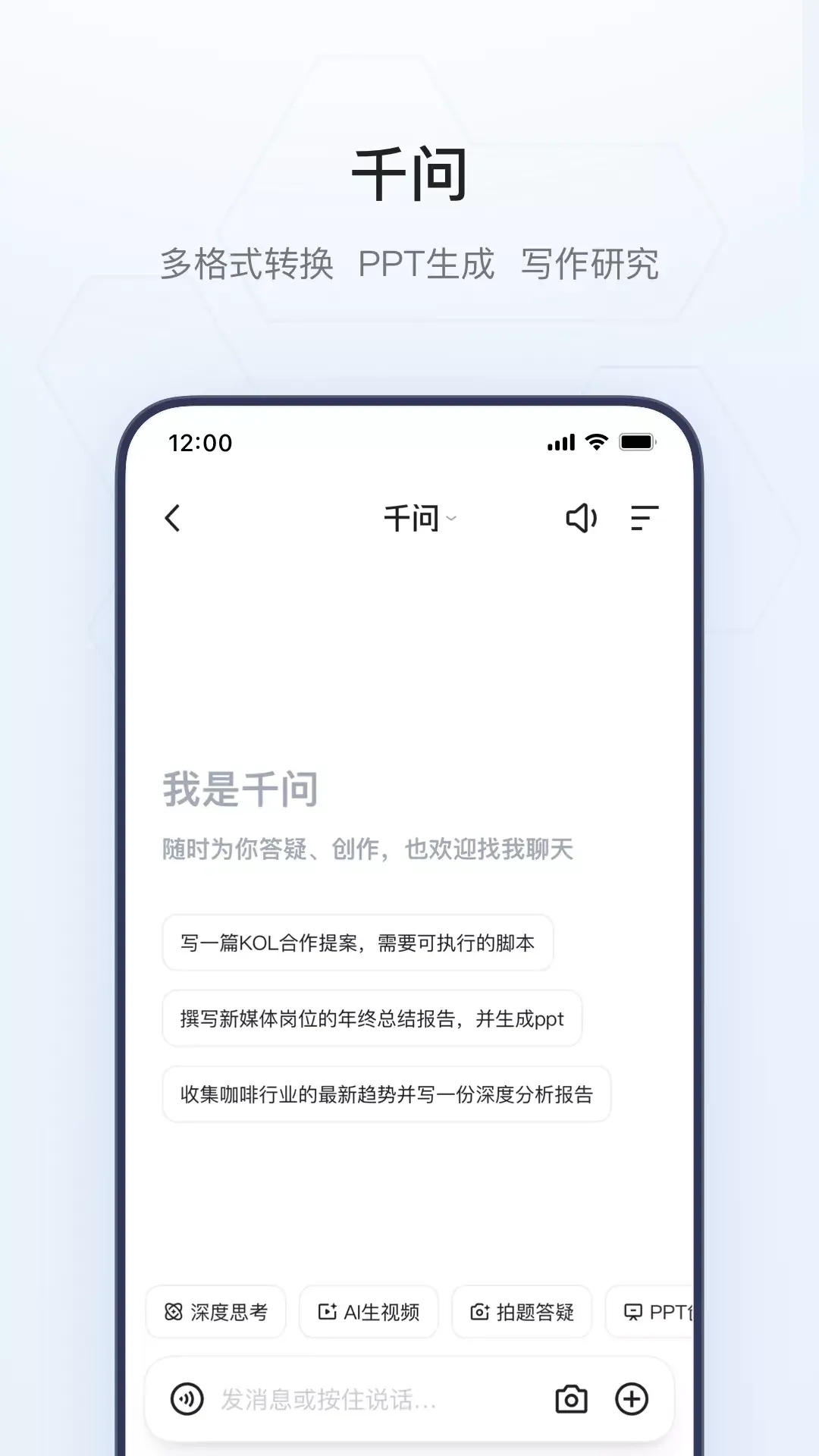 夸克是阿里AI旗舰应用 【千问助手】 最佳助手:使用Qwen最新的模型,为你提供专业、高效的高质量解答。它基于优质知识源与强大的推理能力,在复杂场景下也能输出权威、准确的答案。 先进模型:多模型可选,既适合日常问答写作,也适合科研级推理、公式计算等复杂的多步骤决策场景。 深度搜索:具备强大的推理与执行能力,擅长处理复杂逻辑与多步骤决策。 文采出众:从公文、论文到社交媒体文案,支持全体裁、多场景写作。多种文风,用语得体。 表达清晰:回复结构化呈现,含图表与分点描述,复杂信息一目了然。 多模理解:文字、语音、拍照都能对话,还可以上传文档、提炼要点、转换格式。 【AI搜索】 查资料、看资讯、找答案,夸克帮你快速找到最合适的结果。 智能理解:搜索更懂你,自动理解意图,答案更贴近问题。 AI 总结:即时生成摘要,汇总重点信息,让复杂问题一眼看懂。 结果优化:搜索结果更直观、更智能,节省时间更省心。 纯净体验:界面简洁无广告,信息更纯净,让搜索回归本质。 请求协助:软件进入设置->意见反馈-邮件反馈:kksupport@service.alibaba.com