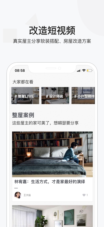 屋里,是一款真实屋主短视频分享软装搭配、房屋改造的APP。 我们拒绝不实用、难实现、局部空间、摆拍的装修美图,提供不用敲墙凿地,通过软装小改造,让居住空间大变样。 这里的“别人家”都是美而实用、符合居住习惯、可参考、能落地、买的到。你可以参考着把你家升级为理想的居住榜样。 以上,不是为了装bility,而是凑字数显专业。 反正,在这里你可以找到: 1、真实屋主短视频分享软装搭配、房屋改造方案。 2、装修避坑经验,超实用的干货教你不踩坑。 3、生活达人、收纳高手的居家秘诀,亲测发掘颜值高又实用的家居好物。 如果你想跟一群美学生活居住爱好者成为朋友,不妨微我:a_a-_-e_e