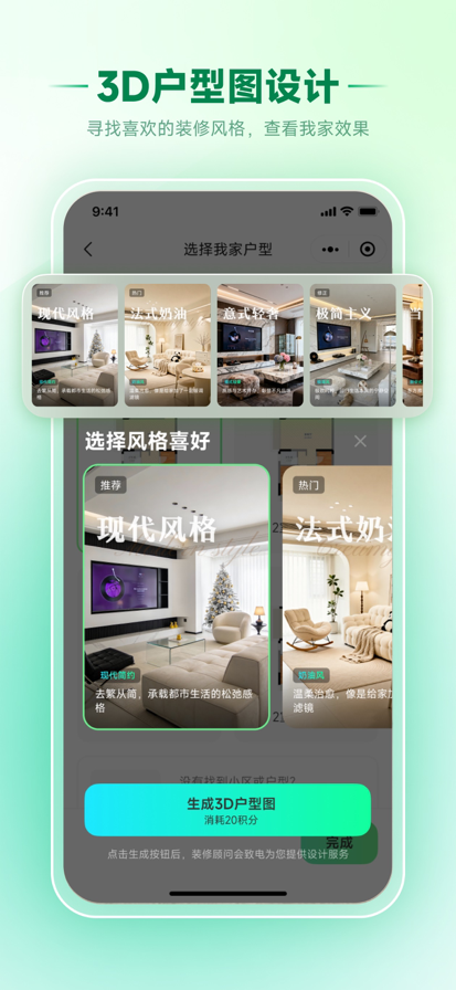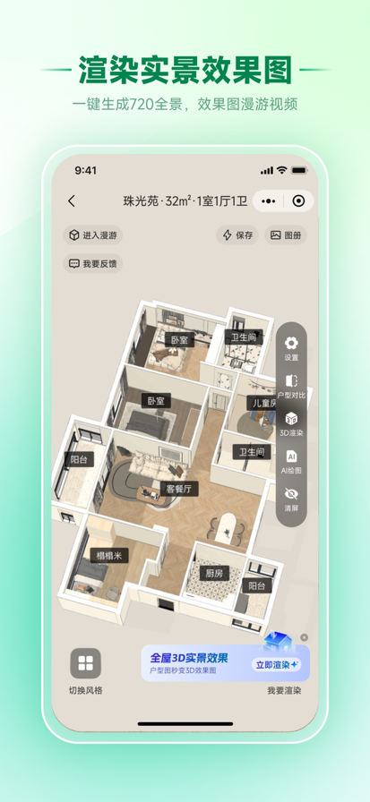 【AI装修伴侣】—— 用AI重新想象你的空间,一键生成理想中的家 厌倦了千篇一律的装修方案?不确定新家具放在家里是否合适?梦想中的花园不知从何下手?AI装修伴侣,正是为你而来的革命性设计工具。我们运用前沿人工智能技术,将你的创意与空间照片瞬间转化为可视化的设计蓝图,让装修设计变得像拍照一样简单。 核心功能一览: 全屋焕新 · 整体设计 室内设计:上传空房间或现有布局照片,AI将根据你的喜好,生成多种风格的完整室内设计方案。 外观设计:想给房子换个外墙?一键预览不同材质、颜色的建筑外立面效果。 花园设计:打造你的专属氧吧。无论是阳台、庭院还是大花园,AI都能帮你规划出绿意盎然的景观。 局部改造 · 精准换装 新墙面:纠结墙漆颜色或壁纸图案?实时看到不同选择上墙后的效果,告别选择困难。 新地板:快速预览木地板、瓷砖、地毯等不同材质铺设在您家中的样子,色彩纹理一目了然。 家具替换:对现有家具不满意?拍照选中它,AI能帮你智能替换成心仪的新款式,完美融合背景。 家具预览:在购买前,将网上的家具“摆放”到您的房间里,预览尺寸、风格是否协调,避免买错浪费。 专业规划 · 创意延伸 户型图设计:即使只有毛坯房或旧户型图,AI也能生成布局合理、动线流畅的3D风格化设计方案,激发装修灵感。 店面设计:不仅是家,更为您的生意赋能。快速生成吸引眼球的商铺、咖啡馆、展厅等商业空间设计方案,提升品牌形象。 为什么选择AI装修伴侣? 零门槛操作:无需任何设计基础,上传照片,选择需求,精彩即刻呈现。 无限灵感:每种需求都能获得多个AI创意方案,打破思维定式,发现更多可能。 决策利器:可视化效果直观清晰,帮助您在装修采购前做出最自信的决策,省心又省钱。 即刻畅想:几分钟内,从想象到“眼见为实”,让装修规划充满乐趣。 无论您是正在装修的业主、热爱生活的租客,还是寻求高效解决方案的设计师,AI装修伴侣都是您不可或缺的创意伙伴。 立即体验,发现您空间的无限潜力! 隐私政策 http://kylin.wildbus.cn/ys/CN/privacy.html 用户协议 http://kylin.wildbus.cn/ys/CN/user.html 订阅协议 http://kylin.wildbus.cn/ys/CN/continuousSubscriptionAgreement.html