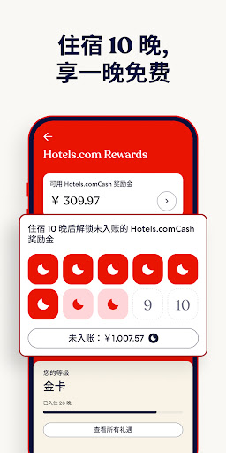 使用 Hotels.com 好订网 App 找到并预订您的理想住宿。 <br><br>使用我们的 App 预订可获得奖励 <br><br>- 在全球 10 万多家酒店享受优惠 10% 或更多的会员价*。 <br>- 预订超过 50 万家住宿可获得奖励。 <br>- 全球超过 50 万家住宿参加此项奖励计划,累积奖励快速、轻松——住店的同时,还能享受奖励。 <br>- Silver 和 Gold 会员可在精选 VIP Access 住宿享受额外礼遇。 <br><br> 寻找最适合您的酒店 <br><br> - 全球 50 多万家住宿任您挑选。 <br> - 无论您是计划短期酒店住宿、最后时限周末度假、长假、商务旅行或任何其他类型的旅行,我们都能为您提供适合的住宿。 <br>- 多数酒店可免费取消,灵活方便**。 <br>- 使用我们的比较工具,并排比较酒店价格、评分和服务设施。 <br>- 使用行程规划工具集中安排您的旅行计划。收藏您看中的酒店、度假短租屋、度假村等,并分享给亲友。 <br>- 在地图上查看酒店或度假短租屋的位置,查阅真实住客点评。 <br><br>使用我们的 App 预订住宿,快捷简便,安全无忧 <br><br>- 轻点几下屏幕,轻松预订酒店。 <br>- 多数酒店支持线上付款或到店付款两种方式。 <br>- 保存您的详细付款信息,将来订房更快捷。 <br>- 最后时限酒店预订。 <br><br>我们的 App 是您完美的旅行伴侣 <br><br>- 保存您的确认信息,随时查看酒店或度假屋预订详情;即使处于离线状态也无妨。 <br>- 随时随地轻松管理您的酒店或度假短租屋订单。 <br>- 通过 App 直接联系我们、酒店方或度假屋房东。 <br>- 选择订阅推送通知,我们将为您发送住宿更新信息。 <br> <br><br>*会员价适用于已登录帐户的会员和 App 用户预订指定酒店。折扣适用于精选酒店的价格(不包括适用税费和其他费用)。需遵守条款和条件,详情请参见网站。**多数酒店可免费取消。部分酒店要求您在入住前提早至少 24 至 48 小时取消。详细信息,请在 App 中参阅住宿页面。Hotels.com 好订网 App 将信息用于数据分析、个性化服务和广告宣传。下载我们的 App,即表示您同意我们的隐私和 Cookie 政策。如需查看此政策,请参阅 https://hotels.cn/customer_care/privacy.html。