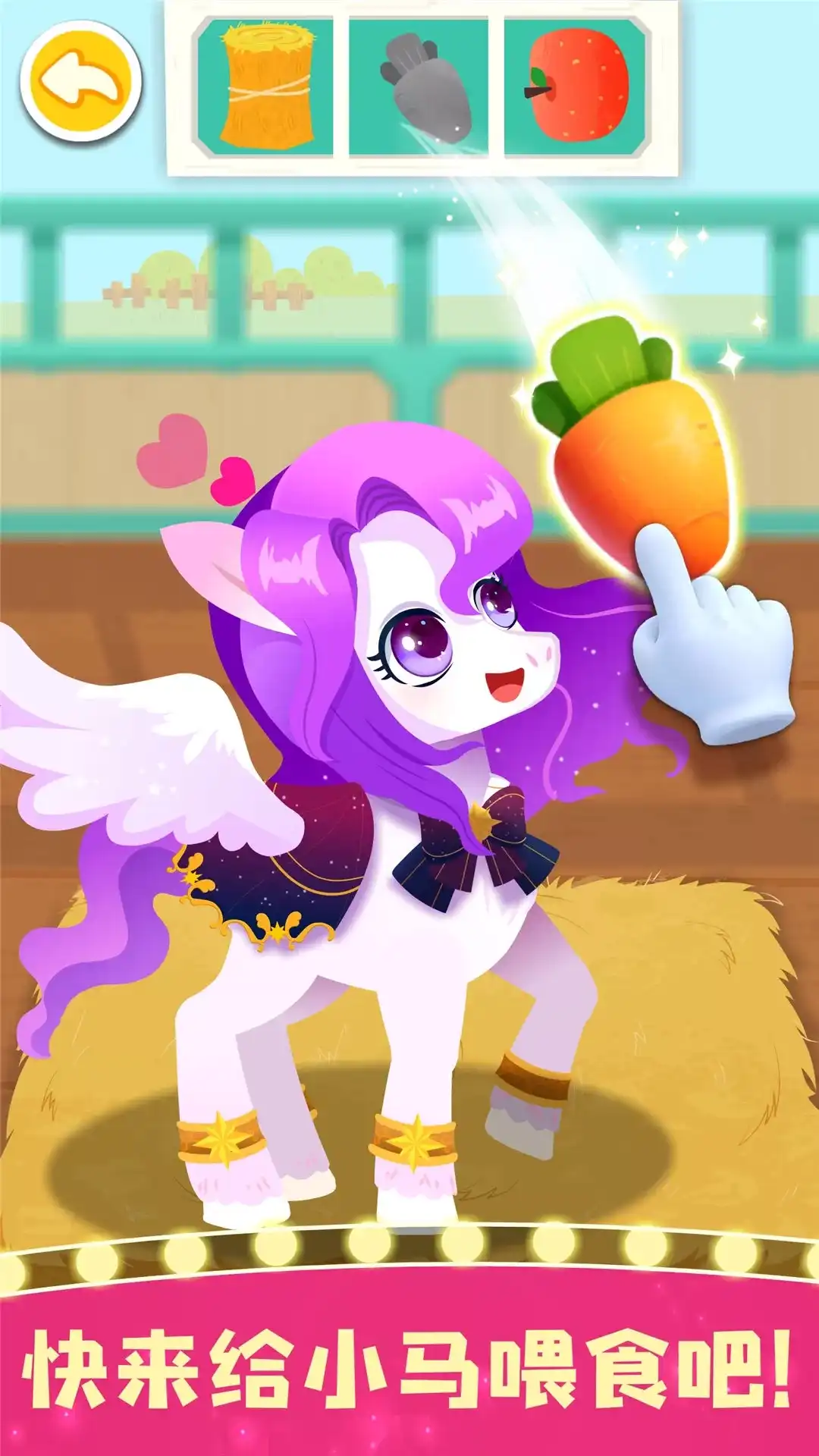 马术大赛即将开始! 俱乐部聘请了身手不凡的小马:擅长舞蹈的朵朵、速度惊人的闪电…… 小马们上赛场前,需要做哪些准备呢?一起来【奇妙小马俱乐部】看看吧! 蔬果搭配,营养均衡 备赛的小马都吃什么呢?小麦饼干、青草蛋糕,远远不够哦。再去选购一些蔬菜水果吧:玉米、胡萝卜、苹果……营养丰富的食物搭配,才能让小马更强壮! 做个护理清洁Spa 小马脏兮兮的,快为它洗个澡!先拿刷子,刷下树叶和尘土。浴花、沐浴露准备好,涂满泡泡,轻轻搓洗,再用花洒冲干净。别忘记用吹风机,吹干毛发上的水渍。 赛前问题检查 嗯……小马的马蹄不舒服,快帮它检查一下吧。先安装支架,将马蹄轻轻放上去,修剪指甲、找出裂痕、抹上草药、再上一层保护油……太好了!小马又恢复活力满满的状态啦! 赛场技艺大比拼 小马们上赛场啦!四大主题锦标赛:障碍赛跑、高空射击、彩蛋迷宫、舞蹈大赛,让小马大展身手。飞行测试开始。迅速左右滑动,才能过关! 快来【奇妙小马俱乐部】,和出色的小马做朋友吧!