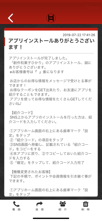 和菓子ひかりの公式アプリをリリースしました! このアプリでは、和菓子ひかりの最新情報の受け取りや便利な機能を使う事ができます。 【アプリで出来ること】 本アプリを利用して以下のことが行えます。 1.最新情報をチェック! 和菓子ひかりのサービス内容が確認できます。 また、お店からメッセージが届くので、いつでも最新の情報がご確認いただけます。 2.マイページで情報を確認! 和菓子ひかりのご利用状況が確認できます。 3.友達に紹介! 和菓子ひかりのアプリをSNSを通じてお友達に紹介する事ができます。 4.他にも便利な機能満載!