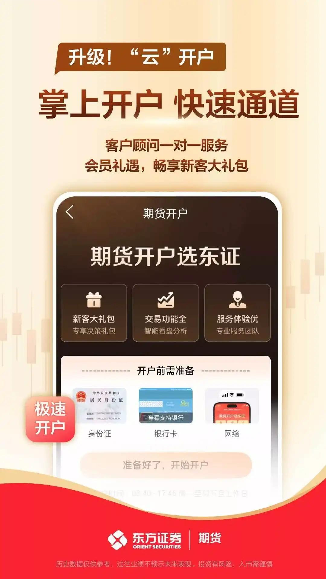 期货开户交易行情资讯一站式理财投资软件! 东方证券期货·智达APP是集黄金、白银、原油、贵金属、股指期货、期权、农产品、有色金属、黑色品种、能源化工等全品种的期货开户、期货交易、期货行情、期货资讯、一对一客服以及掌上营业厅等功能于一体的一站式理财投资软件,让每一位投资者都能享受安全、便捷、快速的期货投资服务。 【公司背景】 上海东证期货有限公司(以下简称“东证期货”)是东方证券股份有限公司的全资子公司,注册资本金50亿元人民币,是经中国证监会批准,在工商管理机关登记注册的正规专业期货公司,拥有上海期货交易所、大连商品交易所、郑州商品交易所、上海国际能源交易中心和广州期货交易所会员资格,是中国金融期货交易所全面结算会员。目前,东证期货在全国重点城市设立了40余家分支机构。以国际化的服务理念、精英化的服务团队、完善的技术系统和良好风险控制能力,提供诚信、专业、全面的期货开户交易服务。 【亮点功能】 ①东证研究:专业机构视角、热点品种涨跌推荐、一图汇总品种策略,助力投资得胜。 ②期货开户:免费快速办理期货开户,银期对接无需临柜,线上远程完成,方便快捷。 ③期货交易:闪电下单,提供商品期货、金融期货、原油、黄金、贵金属等多种交易服务。 ④期货行情:实时播报的国内外期货行情,多种分析周期及技术指标,期货品种全覆盖。 ⑤期货资讯:国内外要闻,热门品种、套利机会,概念投资等,不遗漏任何重要投资机会。 ⑥期货课程:汇集期货投资理论、技术分析、财经知识、大宗商品、高手学院等投资课程。 【联系我们】 客服热线:021-63308568 客服邮箱:online@orientfutures.com 市场有风险,投资需谨慎。