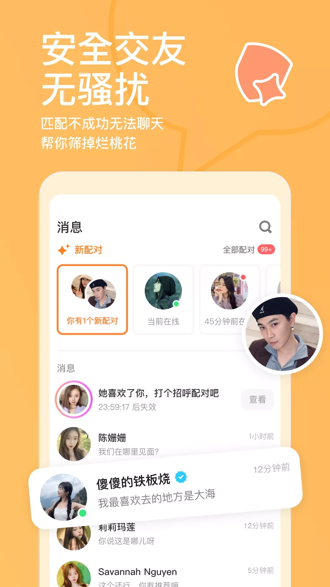 佳偶婚恋交友是一款集恋爱,社交,聊天于一身的APP,已有超过数千万用户在佳偶婚恋交友快速搭讪找到了心仪的另一半、知心朋友、红颜蓝颜知己,全新互动交友形式 【实名认证】为打造真诚、真实、善良的交友环境,平台实行严格的信息审核制度,拥有学历、职业、资产、形象视频认证等认证系统,杜绝虚假信息、广告和不良用户的存在。 【心动推荐】当你的资料完善后,系统会根据你的条件、爱好、恋爱观等特征进行匹配,匹配到和你属性相近的人,能帮助你在共同爱好里找到适合的那个Ta 【动态分享】可以查看你身边同城异性的朋友圈,偶遇你的缘分,分享你生活中的快乐和孤单,方便快速聊天,触手可得。 【无限畅聊】快速匹配适合您意向的单身异性,没有噪音和打扰,双向奔赴才是最好的恋爱。 严格管理,一旦发现资料不真实,一律拉黑封号处理! 来佳偶婚恋交友,美好的事情时时刻刻发生! 我们更欢迎真心找对象的人加入! 单身的你,这里是你更好的选择!
