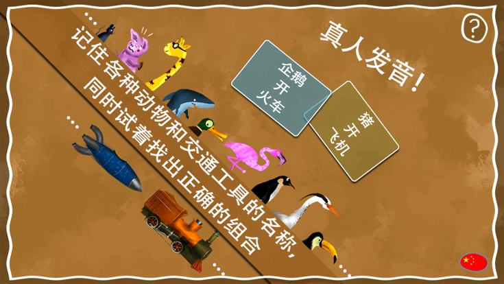 找出动物名称和交通工具名称的互动绘本!! 由24种动物和12种交通工具组成的既有趣又能寓教于乐的猜谜游戏。 小朋友通过滑动屏幕、回答简单的问题,来找出正确的动物与交通工具的组合,比如“小猫开火车”。 此应用程序可以使小朋友通过简单易懂的图片熟悉中文词汇和其他外国语,包括英语、法语、西班牙语、意大利语、日语和俄语。 既好玩又有很强实用性的原创图片出自法国设计师Olivier Defaye! 即使非常年幼的小朋友也能简单操作的界面设计。 现在就为您的宝宝下载这款有趣又有教育性的绘本软件吧!