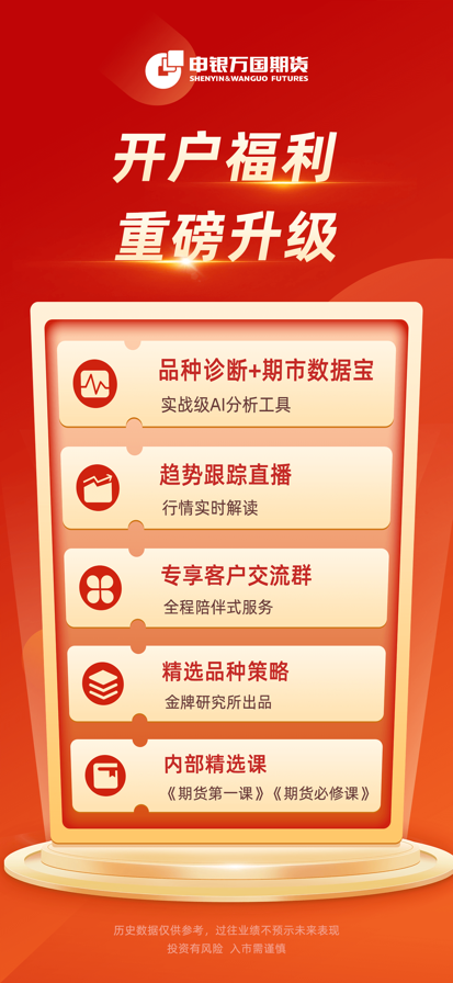 申银万国期货成立于2007年,系申万宏源证券有限公司的全资子公司。经过20多年发展,公司拥有商品期货经纪、金融期货经纪、期货投资咨询、资产管理等业务资格,是上海期货交易所、中国金融期货交易所、大连商品交易所、郑州商品交易所、广州期货交易所、上海国际能源交易中心的交易结算会员,6大交易所的优秀会员。公司总部设在上海,旗下拥有一家全资风险管理子公司、六家分公司和遍及全国营业部网点。 【产品优势】 申万期货APP是申银万国期货有限公司自主研发的移动端一站式期货投资平台!它不仅仅是一款手机炒期货软件,还提供了实盘期货仿真模拟交易。 申万期货APP支持期货线上业务办理,包括股指期货、原油期货、研报、咨询、期货仿真交易和期货交易软件等内容。它不仅为投资者提供了便捷的期货、期权、基金开户入口,还提供了资产管理、期货入门知识、风险管理以及投资咨询等各类金融服务。申万期货App结合AI赋能,上线智能品种诊断功能;并通过AI赋能产业套保,服务于实体经济,提升实体产业的套保参与度,有效规避风险,为客户提供更智能、更新潮、更便捷的金融服务。 【产品功能】 期货开户——极速开户,零资金门槛,全品种,1对1开户及预约服务; 期货行情——实时精准期货行情,多种分析周期及技术指标,洞察市场热点、板块资金及品种资金流向; 期货资讯——实时热点推送,快人一步,捕捉投资良机; 期货交易——支持实盘交易,闪电下单,提供丰富的期货品种交易服务; 投资研报——多维度数据结构,分析大盘走向,掌握行情动态; 行情讲解——深入解读行业数据,助力期货投资; 投资学院——快速了解期货交易规则、实战干货,随时随地学习期货知识; 品种诊断——AI赋能,五大维度全方位解析品种; 期现地图——多品种基本面数据全景透视; 实盘大赛——支持申万·智胜未来x期货日报全国期货(期权)实盘交易大赛,双赛并行,赢百万奖金!(*具体活动规则以App内实际为准) 【交易品种】 ●上海期货交易所(SHFE) 期货合约:金属类(铜、铝、锌、铅、镍、锡、黄金、白银、螺纹钢、线材、热轧卷板、不锈钢、氧化铝、电解铝、国际铜、铸造铝)、能源化工类(原油、燃料油、沥青、天然橡胶、纸浆、低硫燃料油、20号胶、丁二烯橡胶、合成橡胶等); 期权合约:黄金、白银、铜、铝、锌、铅、镍、锡、螺纹钢、天然橡胶、丁二烯橡胶、氧化铝等期权。 ●中国金融期货交易所(CFFEX) 期货合约:股指期货(沪深300、中证500、中证1000、上证50)、国债期货(2年、5年、10年、30年); 期权合约:沪深300、中证1000、上证50股指期权,国债期货期权。 ●大连商品交易所(DCE) 期货合约:农产品(玉米、大豆、豆粕、豆油、棕榈油、鸡蛋、粳米、生猪等)、工业及化工(铁矿石、焦炭、焦煤、聚乙烯、聚丙烯、聚氯乙烯、乙二醇、苯乙烯、液化石油气等); 期权合约:玉米、大豆、豆粕、豆油、铁矿石、液化石油气、棕榈油、聚乙烯、聚丙烯、聚氯乙烯、乙二醇、苯乙烯、鸡蛋、玉米淀粉、生猪期权。 ●郑州商品交易所(ZCE) 期货合约:农产品(白糖、棉花、小麦、稻谷、菜籽油、菜籽粕、苹果、红枣、花生、棉纱等)、工业及化工(PTA、甲醇、玻璃、硅铁、锰硅、尿素、纯碱、短纤、动力煤、烧碱、对二甲苯、丙烯等); 期权合约:白糖、棉花、苹果、红枣、PTA、甲醇、菜籽油、菜籽粕、花生、动力煤、烧碱、短纤、纯碱、锰硅、硅铁、尿素、玻璃、对二甲苯、丙烯期权。 ●上海国际能源交易中心(INE) 期货合约:原油、国际铜、低硫燃料油; 期权合约:原油期权。 ●广州期货交易所(GFEX) 期货合约:工业硅、碳酸锂、多晶硅、电力、商品指数; 期权合约:工业硅、碳酸锂期权。 *部分合约仍处于试点或筹备阶段 【联系我们】 网站:https://www.sywgqh.com.cn 客服电话:400-888-7868 *投资有风险,入市须谨慎。 对于产品如有任何疑问和建议,请与我们联系。