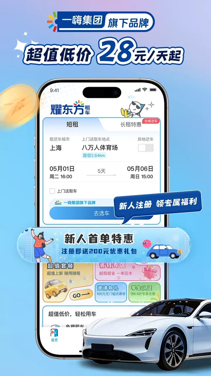 耀东方租车,全国性租车品牌,致力于为用户提供便捷、高性价比、可信赖的租车服务。 【免押租车 轻松出行】 车辆押金限时免收,频繁租车无“押”力,助力轻松出行。 【超值低价 不限里程】 租金低至28元/天起,好车低价超实惠随心租,里程不受限。 【自助取还 便捷用车】 零接触更安心,选择优质自助取还车服务,拥抱健康生活。 【免费取消 无惧退改】 取车前随心退改不收费,不惧行程临时变化,助力无忧租车。 【全天客服 售后无忧】 7*24小时贴心服务,无忧取还车,助力便捷租车。 【联系我们】 官方微信:耀东方租车 官方客服:400-111-6608 官方网站:https://www.yaodongfang.cn/ 试驾新车练练手,周末有空去郊游,朋友结伴自驾游,双人出游去兜风。好车低价,耀东方助力您的精彩生活。下载耀东方租车APP,获取更多惊喜优惠!
