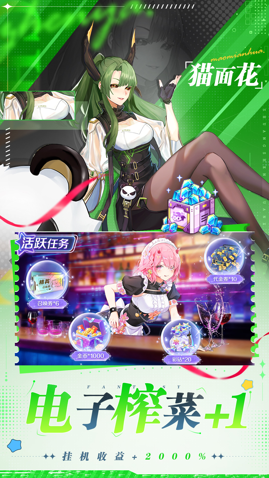 双生来财:SSHuanxiang666,SSHuanxiang888,SSHuanxiang999<br><br>《双生幻想》全新低折版本已开启!在这款异次元卡牌福利放置手游中,你将踏入科技与魔幻交织的冒险世界,召集五族探员,破解混沌迷局。限时福利在线派送,新探员登场、新装扮上线、新玩法开启,更有竞技霸服赛等精彩内容,等你加入这场次元盛宴!<br><br>【核心特色,畅玩无忧】<br>1、千神千面,彩绘次元:角色专属定制,风格各异——暴力法师撒旦、神秘新探员等接连登场,带你探索魔法大陆、虚空幻境等多彩世界。<br>2、无损重置,零成本培养:角色资源一键返还,阵容自由切换,无负担尝试各种流派搭配,想换就换,轻松培养!<br>3、策略搭配,扭转战局:六大阵营、超百位英雄随心组合,输出、控制、治愈等多职业配合,用策略定胜负,体验指尖谋略的乐趣。<br>4、福利满满,零氪畅玩:开局即送神抽机会,欧皇非酋皆能痛快游玩;高福利任务助力快速获得心仪角色,不肝不氪也能持续进阶,搭配至上,人人可成大神!<br><br>立即加入《双生幻想》,解锁你的专属二次元冒险之旅,多重好礼助你开局即赢,玩转全新版本!