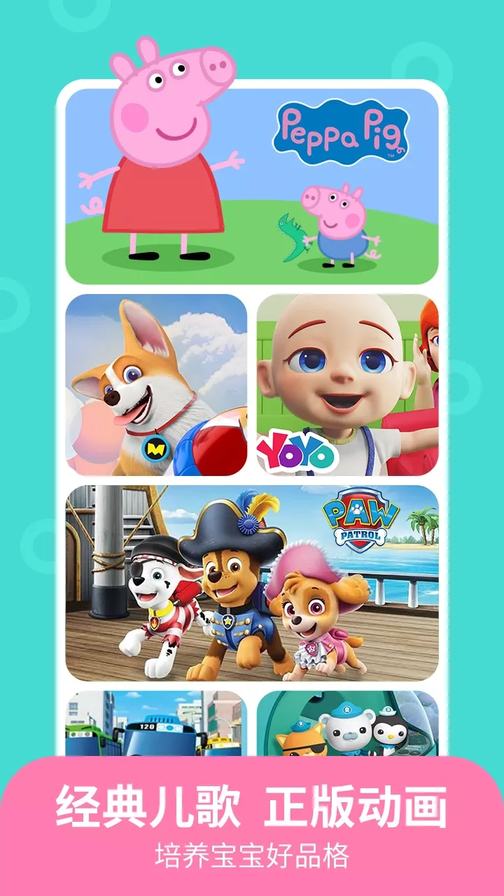 【儿歌多多小朋友版】是一款小朋友非常喜爱的包含经典儿歌故事动画片和宝宝益智学本领的软件,涵盖数字、颜色、图形、文字、音乐等多个领域,通过不同的场景和故事来激发小朋友们认知新事物的兴趣,开阔宝宝视野,激发宝宝无限潜能。 快乐童年,陪伴成长! 产品特色 【艺术绘画兴趣培养】 舞蹈画画兴趣培养,专业的幼儿舞蹈老师,让小朋友轻轻松松学会儿歌舞蹈,还能达到强身健体的目的哦!丰富的简笔画教程,简单几笔勾勒出一个完整的图形框架,再填上自己喜欢的颜色,既可以磨炼小朋友的耐心又可以培养小朋友的审美搭配能力。 【国学经典小故事】 古诗词三字经弟子规成语故事,还有丰富的国学小故事,不仅让小朋友了解中国传统文化,还教导小朋友要讲文明懂礼仪。 【智力开发好帮手】 有趣的拼音识字大冒险,逻辑思维头脑风暴,从小培养宝宝的发散思维,全面开发宝宝智力!生动有趣的英文儿歌动画片,让宝宝了解异域文化,开阔视野。 【亲子互动陪伴成长】 由多多团队精心打造,丰富的亲子互动场景:角色扮演、认知百科、休闲益智、思维拓展、艺术创造,通过不同的场景和故事来激发小朋友认知新事物的兴趣。 【儿歌动画睡前故事】 超多儿歌故事动画视频资源,丰富宝宝的视野和认知世界。由儿歌多多团队精心挑选制作的儿歌系列动画片,丰富的视听体验,萌娃绝搭的哄娃神器! 还收录了海量宝宝喜爱的热门正版动画片:小猪佩奇、汪汪队、喜羊羊与灰太狼、倒霉熊、超级飞侠、舒克和贝塔、可可小爱、海底小纵队、瑞奇宝宝、太友和萌鸡小队……等等,超多小朋友喜爱的动画明星都在这里聚集,可爱萌趣的卡通形象陪宝宝一起度过快乐的童年! 由儿歌多多团队精心打造,爸爸妈妈的好选择,小朋友都喜欢!更多有趣好玩的儿歌故事动画片,让孩子的童年更加快乐! 还推出多多的节日、多多救援队、多多爱郊游、多多超市、多多医院、多多小警察、多多恐龙车……等亲子互动场景,让宝宝随时随地都能快快乐乐玩耍,轻轻松松学本领。