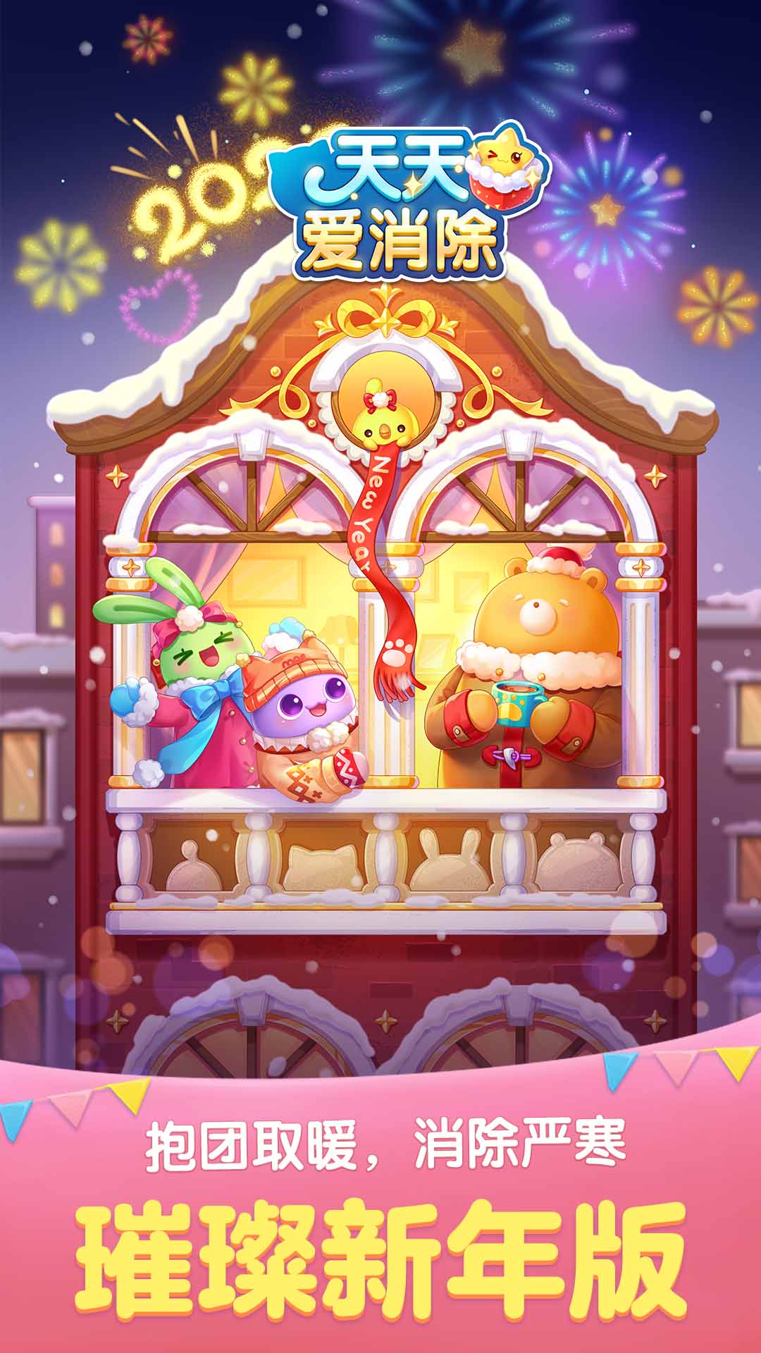 《天天爱消除》是一款以“消除烦恼,治愈心灵”为主题的萌系治愈向消除手游,陪伴玩家度过了10个寒暑!轻划手指,将三个相同的小动物旗子连成一行或一列,即可完成一次消除哦!巧妙安排消除时机,灵活运用消除道具和关卡机制,为你的消除旅程插上翅膀吧! 开发组目前精心制作了将近5000多个关卡,120多种丰富逗趣的关卡元素,更有冒险模式、经典模式、换装玩法、家装玩法、塔防玩法等多种游戏模式等你体验!新的游戏玩法还在不断地推出中! 徜徉在奇妙梦幻的梦境云海里,和暖萌国民IP大使喵星星、黄豆豆、琦琦熊、果果兔一起,运用消除的力量,把人们梦里的烦恼和愁云都清理掉!在消除联萌的暖心守护下,一起做一些甜甜的美梦吧!