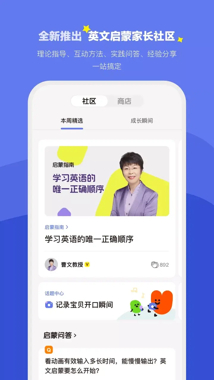 从零开始学英语,逐个突破,举一反三,专为英语零基础学习者编写的一套涵盖日常生活,在家都能学的口袋宝典。 课程学习 【英语发音】提供英语国际音标课程以及自然拼读法课程方便大家自由选择。通过系统化的课程设置让大家可以打好英语基础,在口语发音方面的能力得到提升。 【词汇积累】提供67类实用词汇,分类掌握,内容全面、单词速记,随时随地可练习记忆、复习巩固各类单词。 【情景口语】提供英语情景口语59类话题。这是掌握英语并且完美检验输出的重要环节,多开口练英语,勇敢表达,给自己创造一个更加轻松和有利的英语学习环境。 【英语考级】提供KET考试以及剑桥英语考试参考材料,打好语言基本功,进一步扩大知识面,培养英语综合技能,充实文化知识,提高交际能力,真正做到举一反三。 【阅读】提供阶段性的绘本阅读、名著以及外刊选读材料。这类文章用词精准,同时文中很多观点也具有思辨性。阅读这样的文章或材料可以积累大量知识,检测词汇量,在口语和写作方面也会有很大的提升。 【新概念英语】《新概念英语》经典教材通过完整的英语学习体系,帮助大家掌握英语的4项基本技能——听、说、读、写。每节课都有各种练习功能以供大家学习掌握,另外配有的新概念自学课程也适合大家去学习英语语法,加深学习知识。 【新概念 青少版】完整的知识和技能体系帮助大家系统地学习英语词汇、语音,全面提升听、说、读、写能力。每单元均配有丰富的练习功能:单词听写、背单词、听课文、复读机等功能。 小小学英语帮助大家快乐学习。