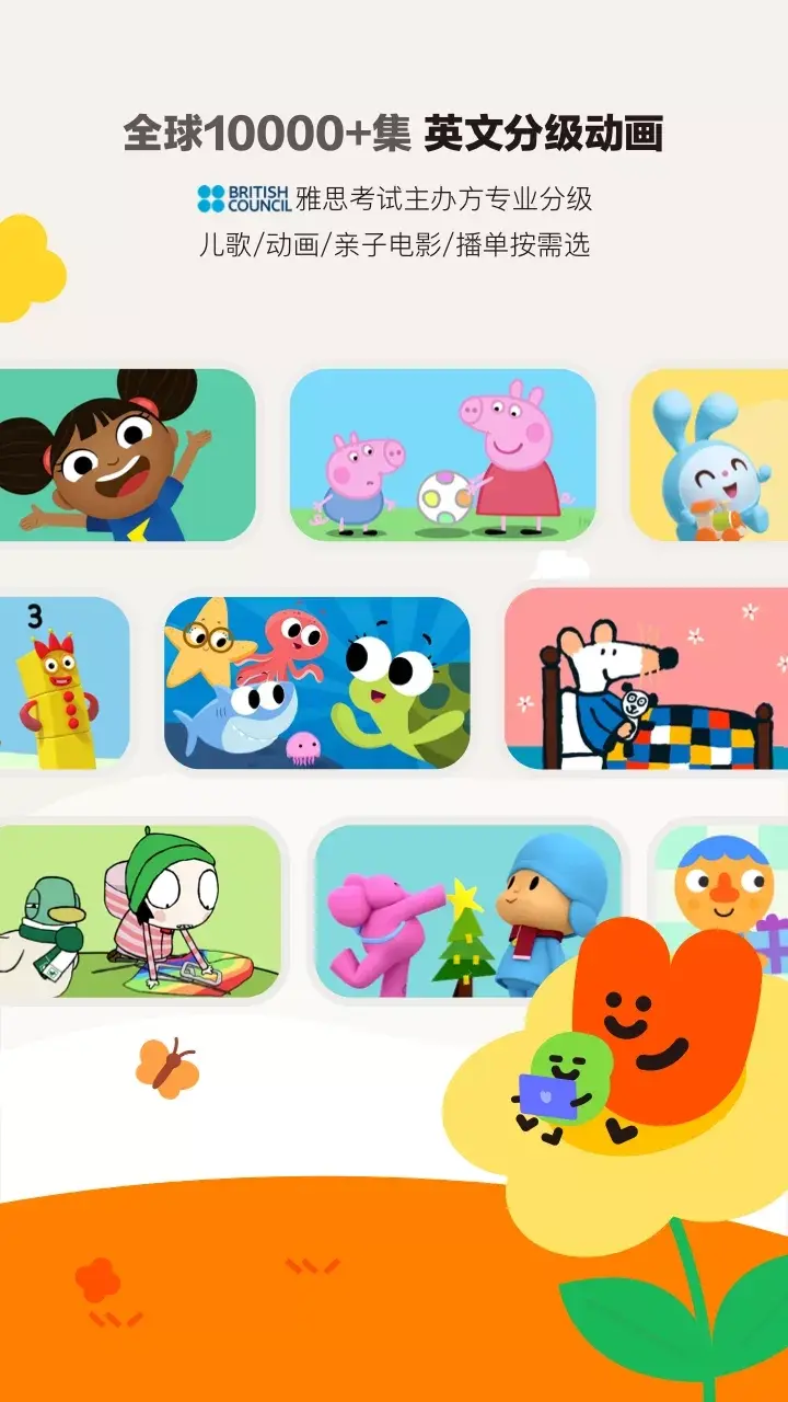 【内容更优质】 Super Simple Songs 中国大陆独播 ,80%国际幼儿园都在用; Super Simple Songs风靡全球,在YouTube点击量早已超过200亿! 【资源更丰富】 热门中英语动画宝库,覆盖全球精选10000+的中英语启蒙动画, 孩子中极受欢迎的《数字积木》《小猪佩奇》《海底小纵队》《小蜘蛛卢卡斯》《开心娜娜和月亮宝宝》《布鲁伊》等大热英文动画片全部原版引进!高清画质+超棒音质+正版翻译,带给孩子超棒的视听感受! 【大屏更护眼】 支持在智能电视(或智能电视盒子)上安装App,支持手机投屏大屏远距离观看,保护孩子的眼睛。 【分级更权威】 在BBC幼儿教育和语言专家的指导下,小小优趣结合孩子认知发展水平,同时参考对白词句难度、复杂度以及故事情节和画面可理解度等,成功打造首套英文动画分级标准与启蒙定制体系:将片库内所有英文动画分为四个Level(大级别),为孩子构建科学、系统的成长路径。