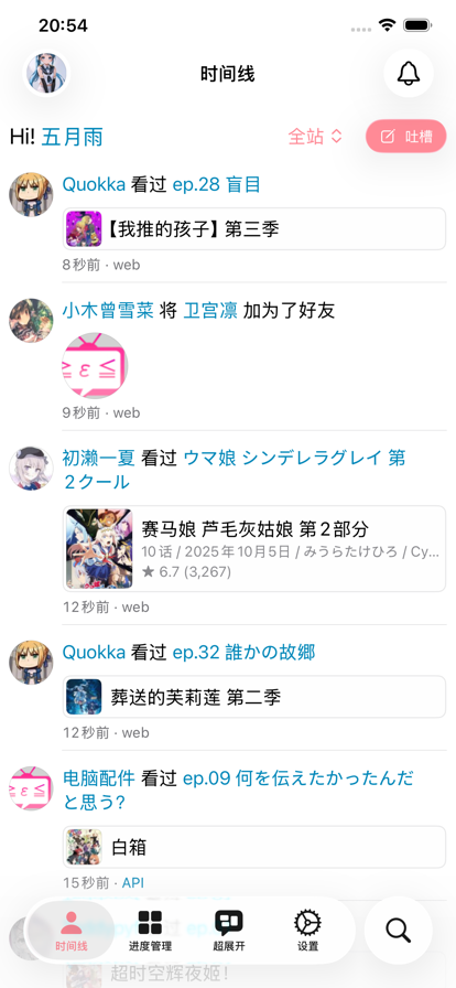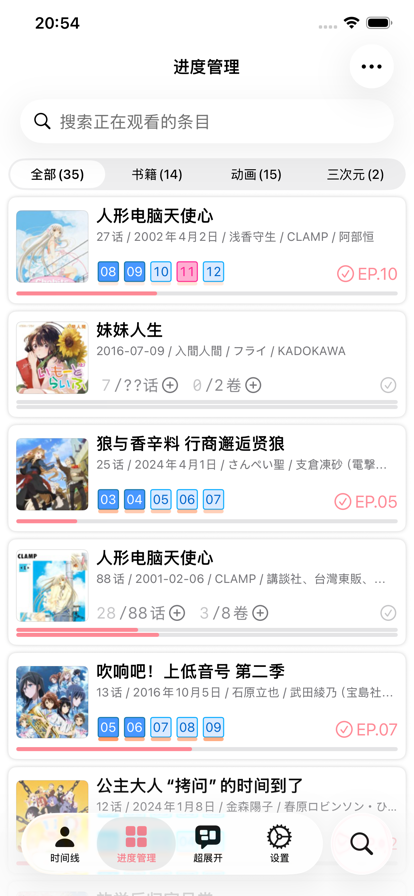 Bangumi 在手指轻触间为你记录你曾经看过的动画、书籍、音乐;独特的收视进度管理功能让你不必担心将看过的章节下载第二次;在乐园里游玩了解各类符合你口味的讯息动向,或到小组里寻觅趣味相投的伙伴。只需要一个 Bangumi 帐户,你就可以拥有这一切。