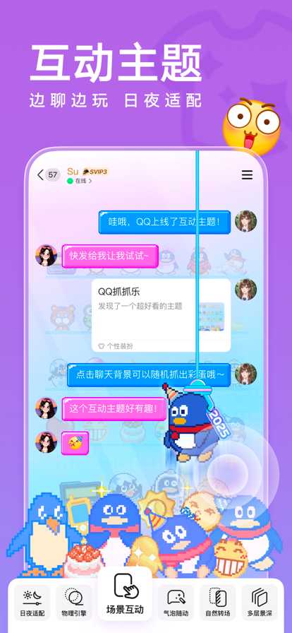在QQ,轻松社交 - [聊天消息]随时随地好友和群消息; - [语音通话]、[视频聊天]和亲友自在畅聊; - [文件传输]手机电脑多端互传,轻松便捷。 在QQ,轻松生活 - [空间动态]快速获知好友动态,随时分享生活; - [移动支付]话费充值、转账收款、网购一应俱全; - [关怀模式]大字体、大图标,操作更简单,长辈使用更方便。 在QQ,轻松娱乐 - [游戏中心]体验热门手游乐趣,还有更多大神攻略分享; - [个性装扮]各种主题、名片、彩铃、气泡、挂件自由选。 QQ将功能赋能,打造轻松欢乐的社交、娱乐与生活体验。 -----联系我们----- 如在使用过程中遇到任何问题,请联系我们: - 在线帮助:进入QQ设置 -> 关于QQ -> 帮助与反馈 - 客服热线:4006 700 700(服务时间:8:00 - 23:00) -----QQ会员/超级会员/黄钻/超级会员+全民K歌会员/绿钻豪华版/腾讯视频会员VIP连续包月服务说明----- 1、QQ会员连续包月服务有以下四种订购类型: 12元/1个月; 30元/3个月; 60元/6个月; 118元/12个月。 超级会员连续包月服务有以下四种订购类型: 19元/1个月; 60元/3个月; 118元/6个月; 238元/12个月。 黄钻连续包月服务有以下一种订购类型: 10元/1个月。 超级会员+全民K歌会员有以下一种订购类型: 45元/1个月。 绿钻豪华版连续包月服务有以下一种订购类型: 12元/1个月。 腾讯视频VIP会员连续包月服务有以下三种订购类型: 25元/1个月; 68元/3个月; 238元/12个月。 腾讯动漫V会员连续包月服务有以下三种订购类型: 15元/1个月; 43元/3个月; 163元/12个月。 腾讯体育VIP会员连续包月服务有以下两种订阅类型: 25元/月; 68元/3个月。 腾讯体育超级VIP会员连续包月服务有以下两种订阅类型: 60元/月; 128元/3个月。 2、订购QQ会员/超级会员/黄钻/超级会员+全民K歌会员/绿钻豪华版/腾讯视频VIP会员/腾讯动漫V会员服务会通过iTunes账户直接支付。 3、在订购服务到期前24小时,系统将按订购类型进行自动续订和扣除相应费用。 4、如需关闭连续包月服务,请至少提前24小时在“账户设置”中进行操作。 5、隐私政策及使用条款: QQ会员/超级会员: https://m.vip.qq.com/clubact/2017/iap/privacy-policy.html 黄钻: https://qzs.qzone.qq.com/qzone/qzact/act/2017/iap-autorenew-rule/index.html 超级会员+全民K歌会员: https://mc.vip.qq.com/iospay/IapAuthRule?id=svipkg_policy 绿钻豪华版: https://y.qq.com/m/client/private.html https://y.qq.com/i/serv_terms_new.html 腾讯视频VIP会员: 隐私协议:https://privacy.qq.com/document/priview/3fab9c7fc1424ebda42c3ce488322c8a 服务协议: https://film.qq.com/weixin/term.html 腾讯动漫V会员: 隐私协议:https://m.ac.qq.com/event/appHtmlPage/privacy.html 服务协议:https://m.ac.qq.com/event/vCardRules/index.html?ac_hideShare=2 腾讯体育VIP会员+腾讯体育超级VIP会员: 服务协议:https://film.video.qq.com/weixin/term.html?bizId=sport&type=common 隐私协议: https://privacy.qq.com/document/preview/3fab9c7fc1424ebda42c3ce488322c8a *加入寻找丢失儿童公益项目,GPS在后台运行可能会影响电池续航时间。