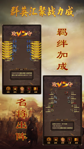 游戏目标是通过招兵买马壮大自己的势力,然后调兵遣将攻城掠地占据所有领地<br><br>游戏中有很多有趣的玩法,例如你可以购买弓和火药让谋士拥有远程群体伤害,可以潜入董卓军中不费一兵一卒挖走吕布,可以让五行相生的武将成亲产生文武双全的将领,还可以在战斗中围困敌军令其走投无路而弃甲归降,甚至还可以复活已在九泉之下的亡魂<br><br>除了标准开局的玩法,你还可以选择随机势力和军队叛乱等模式挑战更高难度的玩法