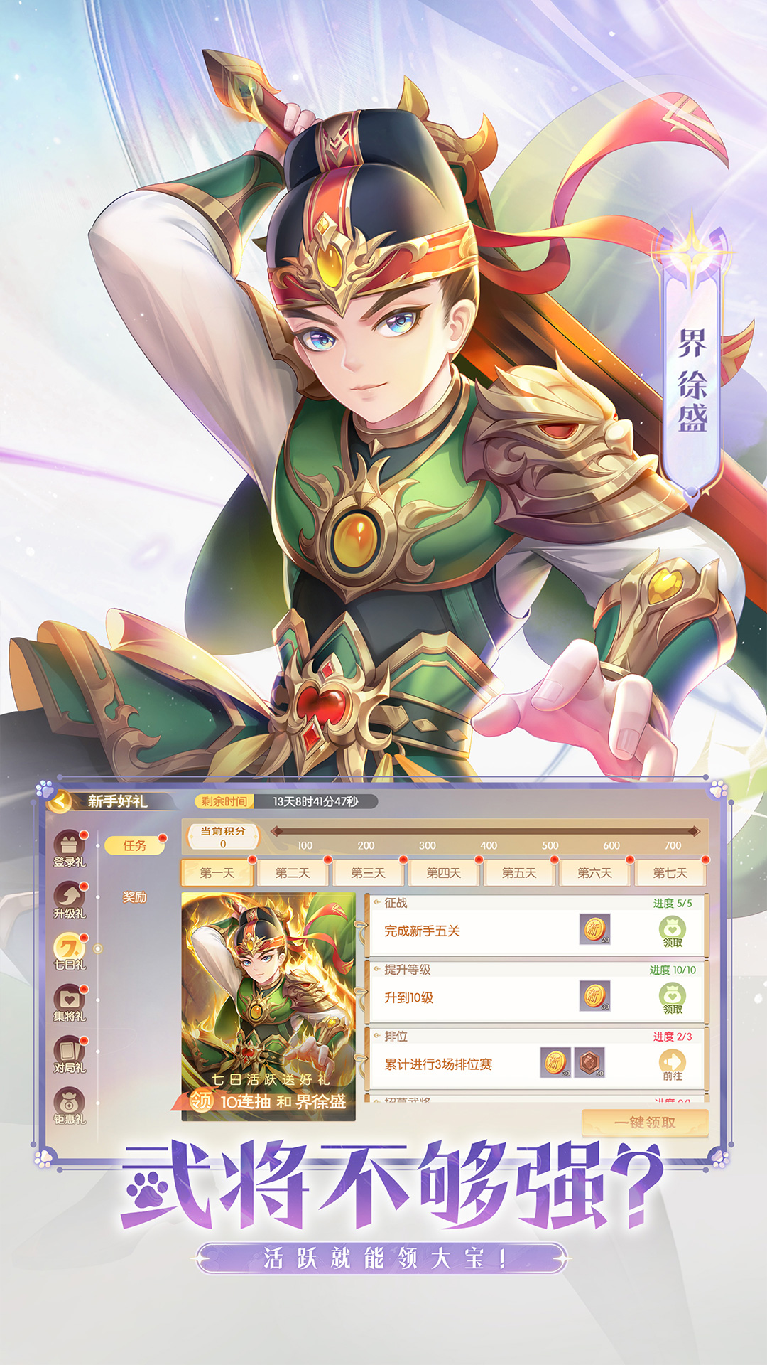 全新放置类策略卡牌养成游戏,融合了多种可玩性元素! 想要了解那段金戈铁马,三雄割据的历史么?想要圆一个在战场上挥斥方遒的主公梦么?想要体验CRPG冒险的刺激么?在这里有几乎所有你想要的。模拟真实的都城建造,搭建出一座功能齐全的城池。寻踪觅宝带你探寻荒野寻找那上古失落的神器,CRPG的独有体现增加了紧张刺激感。还可邂逅邀约美人,红尘一笑,独醉逍遥,快来成为主公体验这可玩性爆棚的三国手游吧! 游戏介绍 【随机寻访,静候佳缘】 佳人再侧,夫复何求。寻访偶遇女神,一对一的女神约会,在线互动,享受甜蜜生活,游船出游,领略河山的壮美。 【建造都城,模拟经营】 没有什么比拥有一座城池跟加令人激动了,城内包含了一套完整的运作体系,从衣食住行,到学思祀礼,应有尽有互相依存。更有将领加成,让游戏更加简单快乐。 【寻宝冒险,惊险刺激】 完美继承了CRPG的精髓,地图迷雾的存在让游戏变得即有惊喜又有惊险,人物的任务对话,打造了游戏的代入感,然你感受到自己就是一个在荒野冒险的侠士。 【挂机放置,休闲经典】 无需操作的战斗放置玩法,在空闲时间拿起来稍微放松一下,即可获得上古神器,也可获得传奇武将!离线时仍然能获得战斗经验,解放被工作掏空的大脑和双手。 【全新地图,一统中原】 整体式的地图,可以知道在哪发生过战斗,随着战斗的推进,地图也在移动,完整而又沉浸的体验那段宏伟的历史。