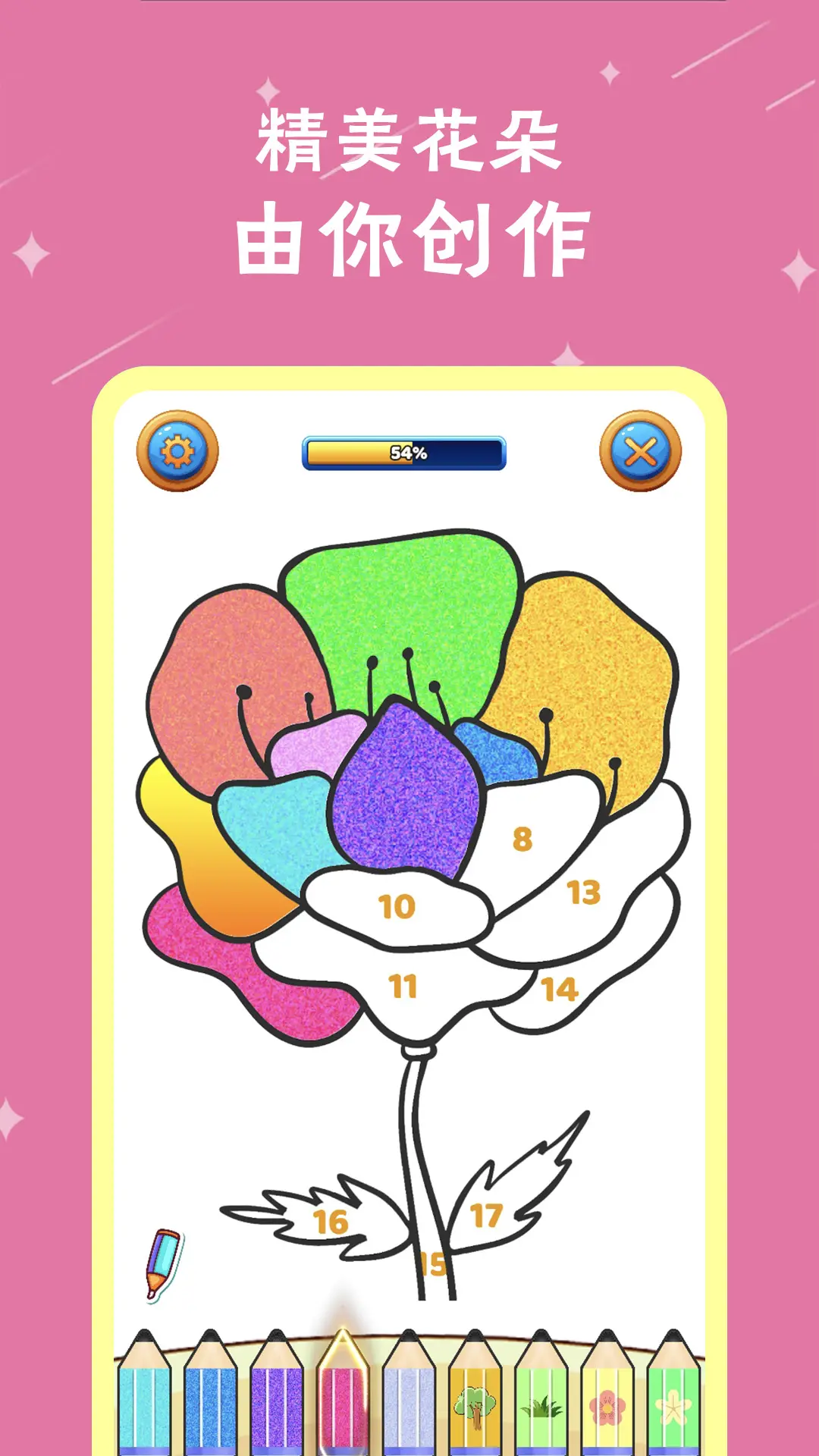 一款沉浸式的创造解压神器,数字涂色解压绘本是一款精美的填色绘画软件,配色治愈温暖。选择喜欢的图片,<br>轻轻一点就可以进行填色涂色,当您遇到压力无法排遣时就能够来这里,当您静静地享受画画的乐趣时,<br>时光飞逝,烦恼也会烟消云散!<br>快节奏的生活,数不清的生活琐事,感到疲惫和压力吗?数字填色精灵是你可以选择放松的方式之一,快来迎接好心情吧!<br>应用特色:<br>应用内图片包括卡通,动物,二次元,曼陀罗,抽象,公主等丰富的种类,满足不同人群的绘画需求!<br>操作简捷:简单易操作,三分钟即可学会!<br>自由缩放:双指捏合即可随心放大缩小,不放过任何细小色块<br>沉浸其中:畅游天色世界,感受创作的乐趣!适合成年人的治愈系填色应用!<br><br>畅玩数字涂色精灵,感受创作的乐趣吧!