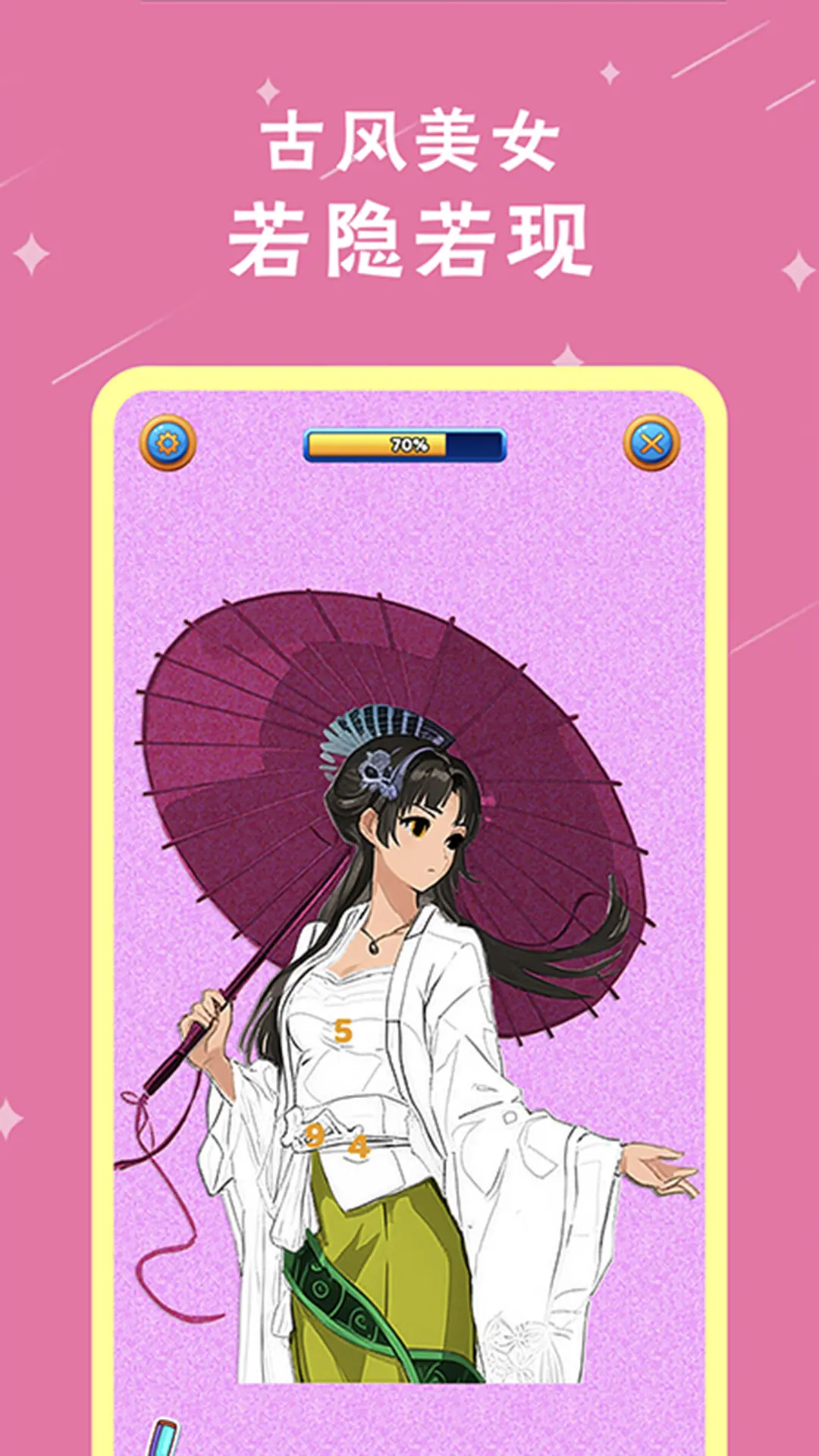 欢迎踏入这个充满艺术魔法的世界,在这里,你将探索涂色与壁纸的完美融合,不再仅仅是简单的选择。借助涂色的魔法,为你的屏幕注入生动创意,打造独特的视觉奇迹!随着数字的节奏,用指尖轻触,每一笔、每一点都是心灵创造力的释放,打造独属于你的数字艺术壁纸~<br><br>【指尖涂色,畅享轻松趣味】<br>独创的指尖涂色技术,让你在手机屏幕上轻松愉悦地挥洒创意。从少女的公主梦到古风的二次元世界,每一款巧妙设计的绘图场景都将让你陶醉于数字填图的无穷乐趣。<br><br>【个性打造,壁纸无拘束】<br>告别单调的壁纸选择,现在你可以轻松将每一幅涂色杰作保存为个性十足的壁纸。个性化你的屏幕,让每个瞬间都充满独特的艺术氛围。<br><br>【主题丰富,创意无边】<br>探索各种主题板块,从秘密花园到二次元世界,每个板块都是一个充满趣味和挑战的创意宇宙。用涂色的方式,释放少女心,发挥你的创作天赋,创造出属于你的独特壁纸!<br><br>【保存创意,轻松分享】<br>一键保存,创作不留痕。在这里,你可以轻松将每一次的涂色创作保存下来,方便随时分享给好友,让大家一同感受数字绘画的奇妙乐趣。<br><br>【打破束缚,轻松解压】<br>填图不只是创作,更是一场减压的艺术体验。用指尖涂色,感受色彩的治愈力,让每一刻都成为愉悦的放松时光。释放创意,让生活在涂色中轻松解压。