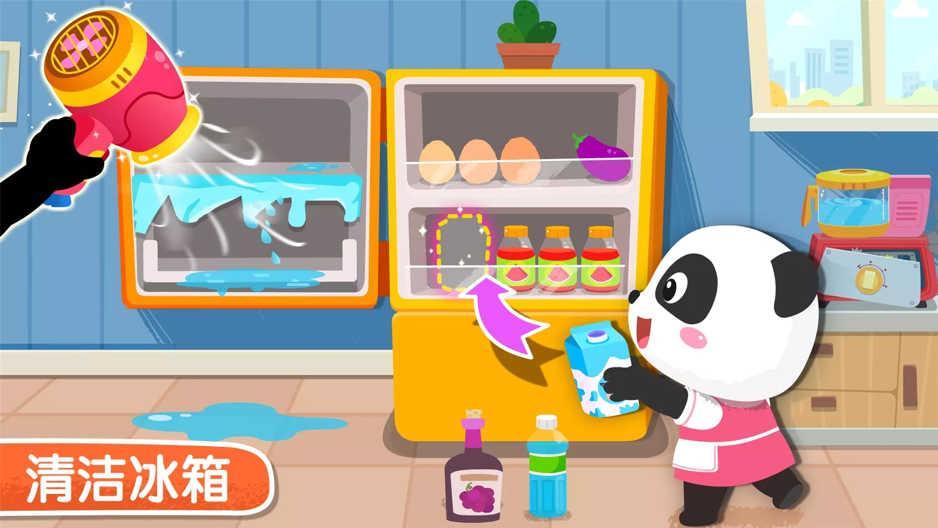 《宝宝家园清洁》是一款模拟家务APP,可体验40多种家务活动,培养宝宝的劳动热情! 今天是妙妙一家打扫卫生的日子,宝宝和妙妙一起,帮爸爸妈妈做家务吧! 【整理花园】 先来帮妙妙整理花园吧!拔草,松土,种树苗,再帮草莓苗捉虫,然后清理坏掉的叶子,撒上肥料,很快就能坐在树荫下乘凉吃草莓啦!(培养热爱劳动的观念。) 【旧物翻新】 小狗的房子坏了,快帮他修好房顶,再刷上漂亮的油漆,小狗看见好开心;清理破掉的墙纸,挑一张粉红墙纸贴上,家里变得好温馨!(激发宝宝创造力。) 厨房榨汁机,齿轮坏掉啦,安装正确的新齿轮,再涂上润滑油,问题解决!(形状匹配,锻炼观察力) 【室内清洁】 卫生间里好脏,快来打扫一下!清理讨厌的小虫子,再给马桶喷上清洁剂和杀菌药水,刷完一按冲水建——咦,水下不去?原来是水管坏了,宝宝快来接好它!(锻炼宝宝逻辑思维能力) 冰箱里结满了冰,不能放食物了。清理冰块,把水擦干,再把饮料,肉类,蔬菜等分类整理好!(锻炼宝宝归类整理的能力) 宝宝,你家务干的真棒!妙妙送了你一枚小勋章! 产品特色: 5大场景,40+互动,全面体验家务; 4大益智互动,全面开发大脑; 完成家务,收集勋章,培养正确劳动观。 宝宝巴士(BabyBus)是专注打造儿童启蒙数字产品的原创品牌,累计服务全球5亿家庭用户。宝宝巴士秉承“快乐启蒙”的理念,用奇妙有趣的方式为儿童提供免费的数字内容,量身定制“好听”(国学故事)、“好看”(儿歌动画)、“好玩”(互动APP)等系列内容产品,让孩子在趣味中认知世界,感受“真、善、美”。 宝宝巴士(BabyBus)是全球5亿家庭用户的选择,陪伴宝宝快乐成长,让宝宝学会独立思考,享受探索世界的乐趣。同时也为家长们提供专业、全面、丰富及个性化的启蒙产品。 【宝宝巴士】儿童app,获得宝宝巴士世界、宝宝巴士儿歌、宝宝巴士故事、宝宝巴士奇妙屋、宝宝巴士、宝宝恐龙家园、宝宝梦想小镇、宝宝爱整理、公主化妆舞会、宝宝救援队、宝宝建城市、时尚小公主、奇妙宠物美妆店、宝宝爱水果蔬菜、宝宝动物世界、宝宝巴士科学、宝宝宠物救援、奇妙的节日手工、宝宝颜色梦工场、奇妙手工调色、宝宝时尚设计师、宝宝创意拼贴、奇妙的工程车、奇妙昆虫世界、奇妙森林历险记、宝宝不怕、宝宝营养料理等使用者的一致推荐。 欢迎联系: 微信:宝宝巴士 微博:@宝宝巴士 官网:http://www.babybus.com 邮箱:cn@babybus.com