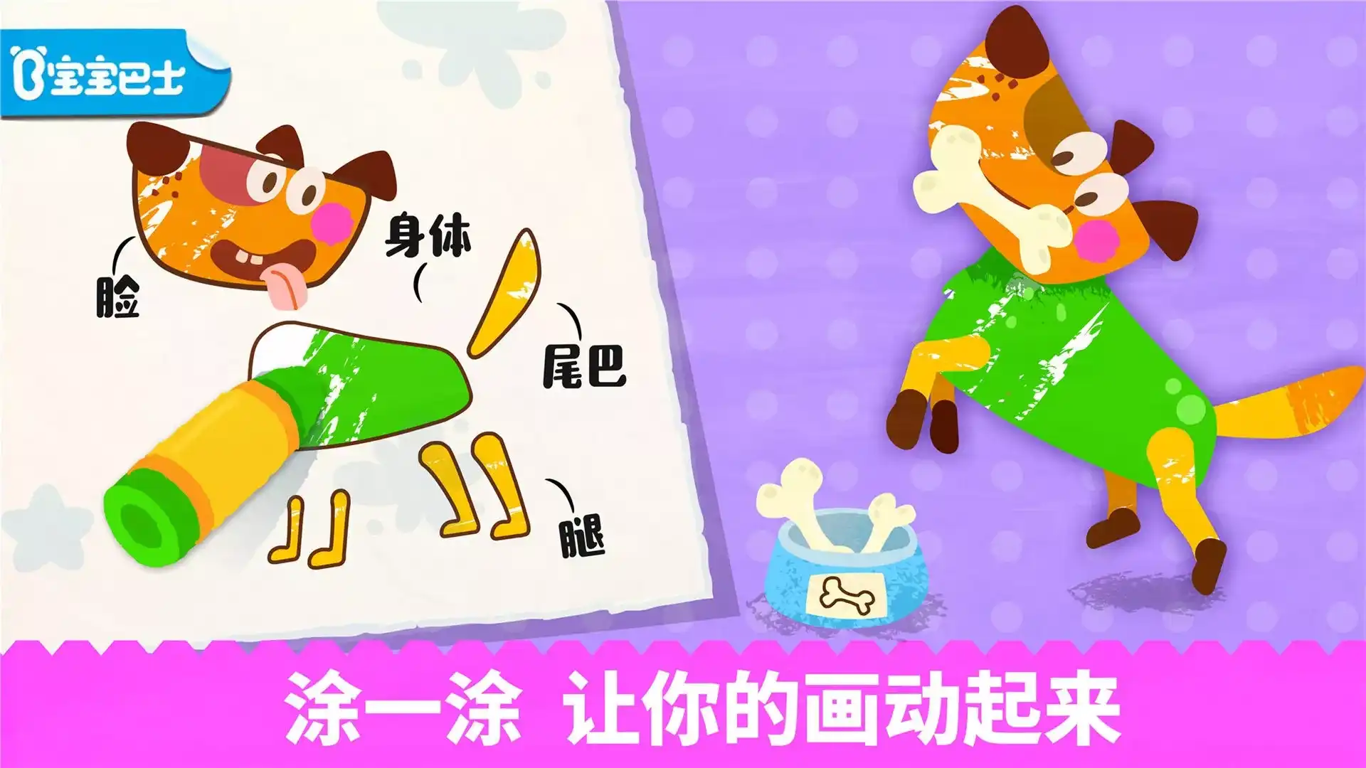 《宝宝绘画书》是一款儿童绘画启蒙APP,既能进行绘画启蒙,又能帮助宝宝认知动物。 一群小动物被封印在了绘画书里,复活它们的方法是:涂色!小英雄,到你出场的时间了!快拿起手中的涂鸦笔,为小动物们涂色,让它们动起来吧! 【产品内容】 海量线稿,随心选择! 大嘴巴的青蛙,吐泡泡的小丑鱼,爱打滚的小刺猬……10+可爱动物,20+水果蔬菜,丰富涂色素材,萌动童心!帮助宝宝认知动物 丰富颜色,自由搭配! 7种基础颜色,自由搭配,随心涂鸦!你能画出多少种颜色的小猫?绘画启蒙,激发想象力与创造力 趣味动画,寓教于乐! 涂色完成,封印解除!哇!小动物复活啦,快去和它们玩游戏吧!摘苹果,喂虾仁,捉老鼠……动物小剧场,欢乐开锣!动物习性认知 【产品特色】 1.30+涂鸦素材,促进宝宝绘画启蒙! 2.标准发音,宝宝跟读,学习基础颜色! 3.海量动画,趣味剧场,认知动物习性! 宝宝巴士从健康、语言、社会、科学、艺术五大领域关注幼儿成长,根据幼儿不同年龄段左右脑发育、敏感期特点和学习重点来设计产品,打造“年龄+能力”的教育产品体系。让孩子学会独立思考,享受探索世界的乐趣。 【宝宝巴士】是全球3.5亿家庭用户的早教选择! 【宝宝巴士】儿童早教app,众多儿童早教产品的一致选择,孩子从小学宝宝巴士儿歌、宝宝巴士大全、宝宝巴士奇妙屋、宝宝巴士乐园、宝宝超市、宝宝地震安全3、宝宝爱水果蔬菜、宝宝汽车城市、宝宝手工零食等使用者的一致推荐。 在【宝宝巴士】,我们自己也身为爸爸妈妈,所以非常重视儿童的健康和儿童的隐私。下载应用前,您可以从这里阅读我们的儿童隐私政策:http://cn.babybus.com/index/privacyPolicy.shtml _________ 欢迎联系: 微信:宝宝巴士 微博:@宝宝巴士 官网:http://www.babybus.com 邮箱:cn@babybus.com