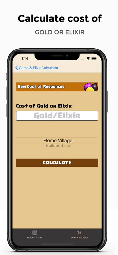 Hurry up! "Clash of Calculator (CoCalc)" is a calculator for optimize your Clash of Clans army cost and evolves much faster stealing more and more resources. You are fan clash of clans? Clash Gem Calculator will let you calculate the gem cost for the following in Clash of Clans: - Gold or Elixir - Dark Elixir - Time Note: This applications is not a hack or cheat for Clash of Clans neither it provides any way to get unlimited free gems. Disclaimer: - This app is a calc app and not a game. - This app and its content is not affiliated with, endorsed or sponsored by Supercell. For more information see Supercell’s Fan Content Policy: www.supercell.com/fan-content-policy.