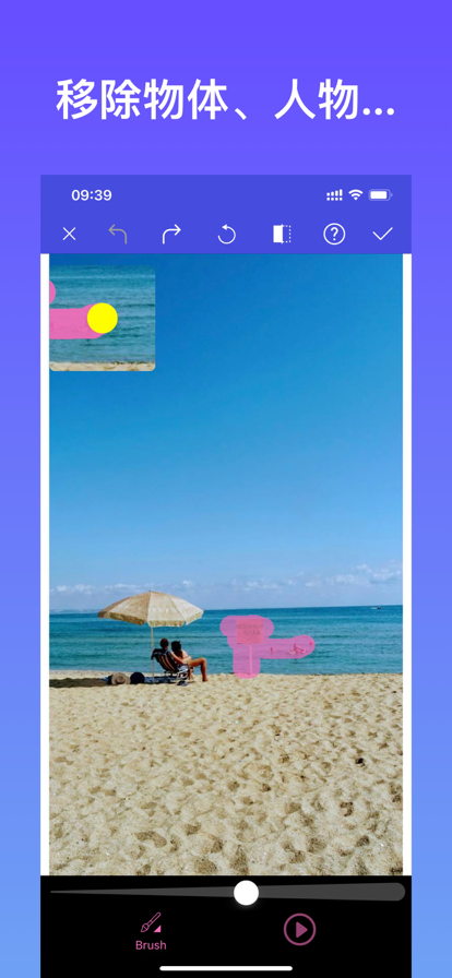 您可以删除不需要的对象而不擦除背景。 通过去除或覆盖来达到修复效果。本应用提供了多种照片和视频编辑工具来实现此功能。 - 删除对象:通过滑动选择对象自动删除不需要的对象。 - 克隆工具:通过克隆图像的一部分然后覆盖不需要的部分来修复照片。 - 画笔工具:对于单色背景的图片,使用画笔工具应用背景颜色来删除对象。 - 裁剪工具:剪切照片和视频的边缘 - 水印视频:向视频添加表情符号、图片、图章、标题和文本。 - 修剪视频:将视频修剪到完美的长度。 - 其他工具:设置封面、反转视频、旋转视频、合并视频、视频变速器。 升级至专业版 #永久专业版: * 一次性购买并随时随地恢复购买。 #年度专业版: * 年度自动续订订阅,到期自动续订。 * 确认购买后,付款将记入 iTunes 帐户。 * 除非在当前订阅期结束前至少 24 小时关闭自动续订,否则您的订阅将自动续订。 * 订阅可以由用户管理,并且可以在购买后转到用户的 iTunes 帐户设置来关闭自动续订。 隐私政策:https://yuntangapps.web.app/privacypolicy.html 使用条款:https://yuntangapps.web.app/terms.html 联系我们:yun_tang_tech@163.com