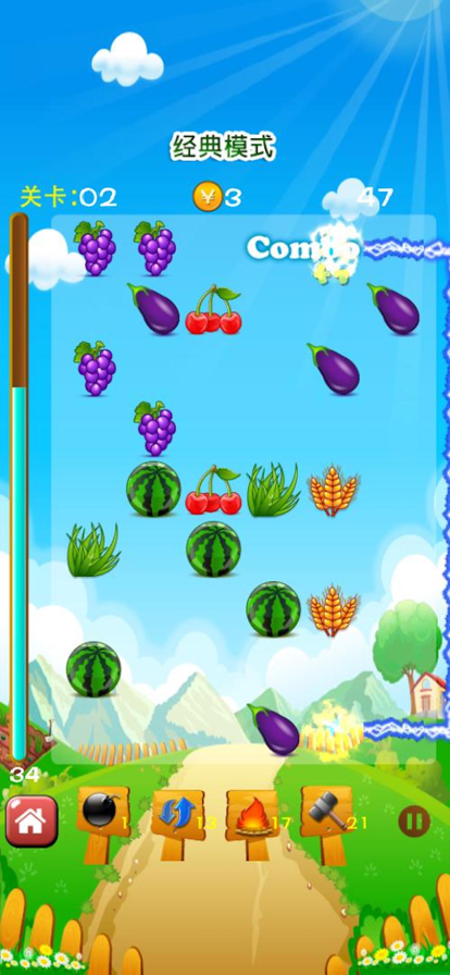 水果连连看是 一款经典版免费对对碰消除小游戏! 游戏以水果为消除元素,画风可爱,玩法简单,内容非富多彩,关卡众多; 丰富的道具使用; 多种游戏模式: 经典模式:连连看经典的玩法,规定时间内消除所有水果就算过关; 倒计时模式:争分夺秒,生死急速,坚持到最后的都是英雄; 移动模式:消除掉水果之后,剩下的可是会动的,一定要看清楚哦!