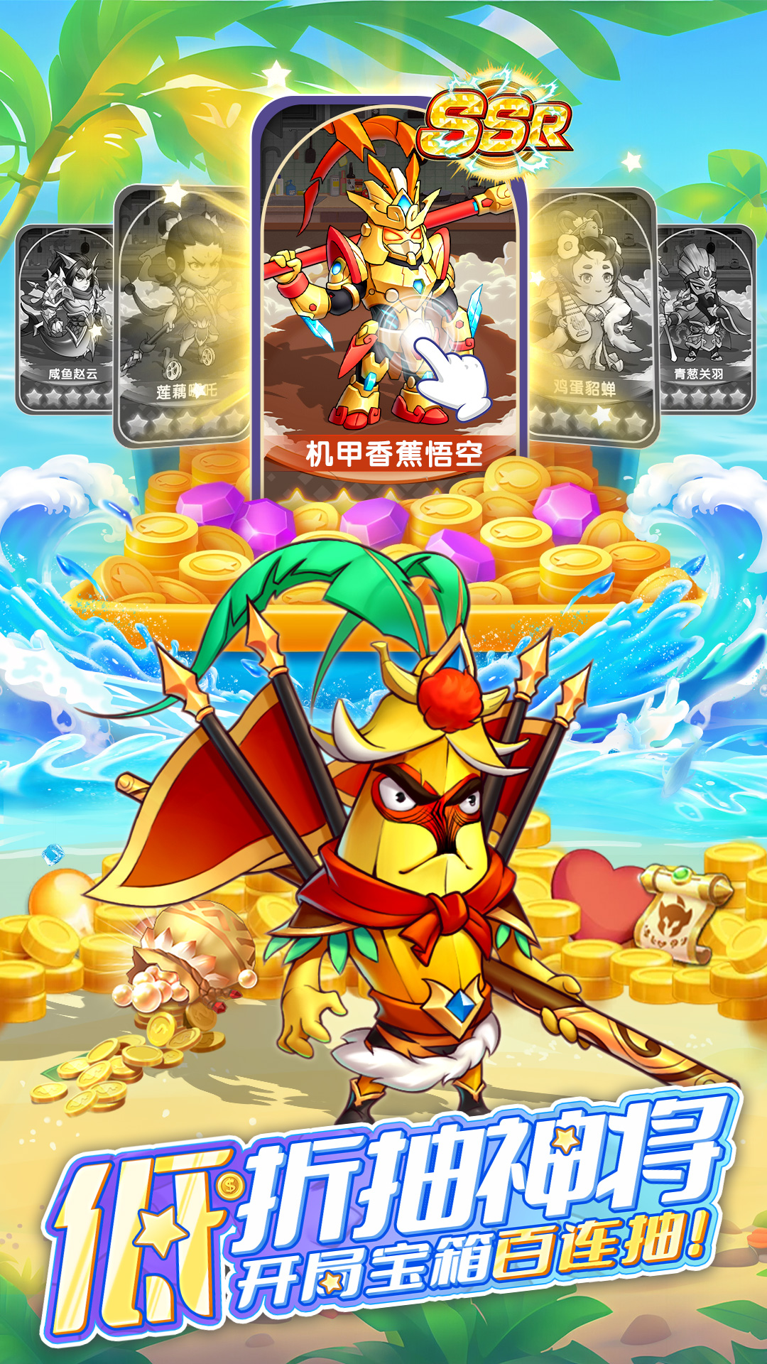 欢乐集结,趣玩一夏!【通关密码】:上线兑换vip66、vip88、ttjj6<br>----------------------------------------------<br>这一次,我们准备了超多福利,开局宝箱百连抽,金将随意领,二次元百位女神零距离接触,还有千万金币等多重福利,想要一夜暴富?那你必须要来试试这款!新英雄新玩法,关羽、哪吒、八戒应用尽有,多样英雄任意搭配阵容,轻松闯关,畅快上头!还有大战僵尸,爬塔等趣味玩法,欢乐集结,畅玩不腻,确定不来试试吗?