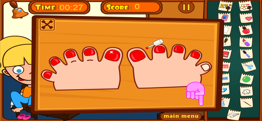 贝贝准备要去好朋友的生日派对了! 可是贝贝刚从公园玩耍回来,还没有清洁和换衣服。因为贝贝平时都不好好护理自己的手,所以他的手特别脏和不好看。你能帮助她,清洁他的手和帮他好好装扮一下吗?美甲是爱美女孩的最爱,设计你梦想中的美丽指甲,秀出你的技能和风格!设计完指甲之后,你还能化妆和装扮哦~~ 游戏玩法 先用毛巾把手搽干净 然后用洗手液涂手,冲水水洗手,再用毛巾搽干水 把手泡在玫瑰花瓣水里5秒,然后用毛巾搽干水,再在手上涂护肤品 最后在贝贝的指甲上涂上美丽的指甲油和水晶甲 我们还可以帮他戴上喜欢的装饰品,比如戒指,手链等等。。