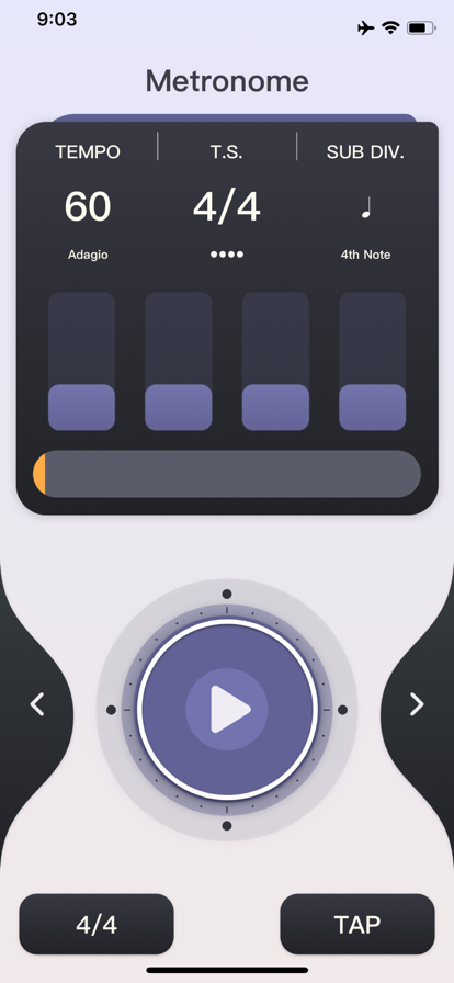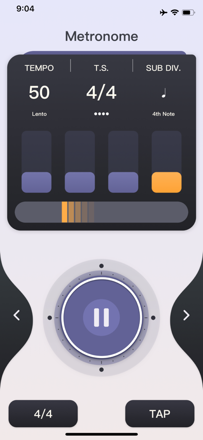 Beats Pro Most powerful metronome and drums beats Function list: * tempo adjustable 20 ~ 400/20 ~ 80 tap in function * Acent Settings: Three tpyes * mete setting: note - 1,2,4,8,16,32 Beat - 1 ~ 16 * subdivision setting * metronome sound setting: 39 kinds * Accent volume setting tempo practice * tempo map set different tempo play together * Drum: 25 styles drum beats song. -adjust drum beat song tempo -tap drums beats. -loop drums beats. * bar count -tempo bar count * background play * screen flash * LED flash Ect ... More function by beats pro