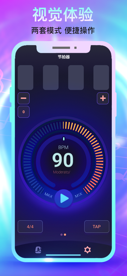 专为练习乐器,玩转音乐节奏的你准备的手机专业节拍器&调音器。它不仅能帮助你掌握日常的乐器节拍,亦可作为钢琴、吉他等乐器高阶节奏训练的必备工具。节拍器让你轻松掌握乐器乐谱节奏,让你对节拍更加敏感,对节奏更加敏锐,让你从此爱上钢琴古筝尤克里里等乐器。 特色功能: 【音色调节】 - 支持18种不同的音色,可以随心选择喜欢的音色进行练习; 【人声喊拍】 - 支持中英文人声喊拍; 【自定义节拍设置】 - 多种不同的音节拍、音符、15种细分节拍可供选择; - 调节各种节奏的速率直至调出所需的音乐节拍; 【仿真节拍器】 - 模拟钢琴节拍器、吉他节拍器等节拍音轨 - 能够帮助你掌握日常的乐器节奏练习 【操作方便快捷】 - 你值得拥有的手机节拍器,按钮点一点,操作方便快捷; - 简单精美而又充满人性化的操作界面; 【更多】 - 所有功能完全免费的tempo节拍器 - 更多的功能期待您的亲自体验。 节拍器为每一位音乐爱好者而生,助您掌握专业节奏律动! 来见识最精确的音乐节拍器应用!无论您是已经得道的大神还是初出茅庐的菜鸟,它都将是您值得拥有的节拍器免费工具。 节拍器非常尊重用户隐私,我们不会收集用户的任何文件信息,我们完全遵循用户的隐私政策。 隐私政策:https://www.camoryapps.com/moreapps/privacy_policy/metronome/policy_cn.html 服务条款:https://www.camoryapps.com/protocol/metronome/protocol_cn.html 更多节拍器的功能请下载体验,有任何意见或者建议都可以在App里联系我们。