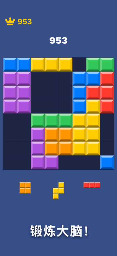 炫酷的界面,形状各异的多彩方块! 将方块拖进棋盘中,使各个不同形状的方块能够填满棋盘中的任意一个九宫格或者行列后合并消除得分。如何将更多的方块填进棋盘中是胜利的关键哦! 方块一旦放置到棋盘中将无法移动,如何合理放置方块获得最强的消除分数,需要你保持聪明的头脑和清晰的思路。一起来动动脑,快乐的体验这意志解谜砖块消消乐! 特点: - 益智脑力,炫酷消除:超级经典七巧板玩法,将方块拖入棋盘中拼接消除,消除特效华丽炫酷,闪爆你的眼球。 - 规则简单,易于掌握:拖动方块的简单操作,拼合方块即可魔术消除,规则清晰易懂,大小朋友都能轻松闯关。 - 创新有趣,爱不释手:在传统玩法基础上注入新元素,体验经典玩法消除的畅快同时还能带来全新的刺激有趣体验。 - 极简UI,多彩方块:无任何多余按钮,介面极其简约清爽,各种形状的方块颜色鲜艳多彩,绝对能第一时间吸引你的眼球。 - 没WIFI?没问题,无论你在哪里,无网络都可以进行,天天随时随地为你带来欢乐。 不用网络的方块九宫格能伴你左右,不管你是男生还是女生,不管你是双人还是单人,都能在好玩的方块九宫格找到快乐!推开一切烦恼,让我们一起享受这个简单却让人爱不释手的产品吧!