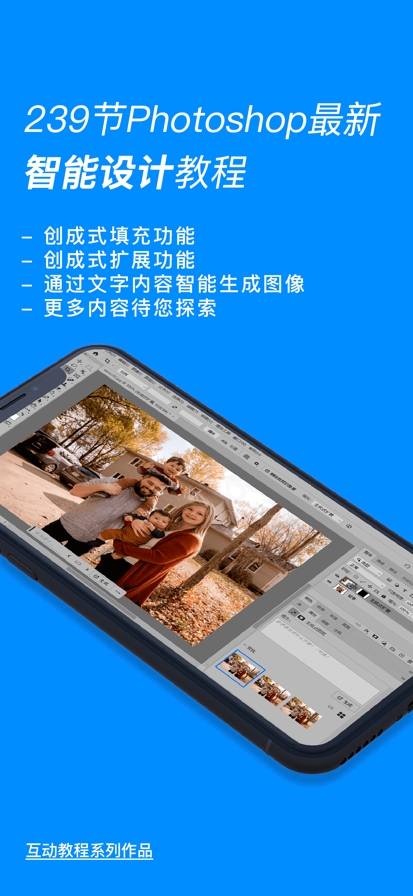 ◈ 不看视频不看书,真正的交互学习模式,超好玩的Ps课程,手把手学习Ps! ◈ App store下载量超百万! ◈ 超千份来自世界各地学员的五星好评! ◈ 单击、双击、长按、拖动及各种快捷键,就像在真正的Photoshop上操作一样! ◈ 比观看视频、阅读书籍更加有效、有趣!玩着玩着就学会了Ps! ◈ 指尖点亮设计之源,哪里不会点哪里! 【这些全部是用户在APP Store上的真实评价】 “手把手来操作,实时看到效果,太适合初学者!做得不能更棒!良心教程!” -- Pygmy_Owl “真的没有想过一个教程软件还能做得怎么好,你值得拥有” -- 一个很好的教程软件 “很强大呀,一直想学PS软件,这个感觉太合适了,不耽误时间,讲的都是干货,给力” -- 略懂 “我是做广告摄影的,经常需要制作后期修饰、图像合成之类的效果。该应用是互性最棒的Ps教程,没有之一,帮助我快速入门!” -- SACRED DRAGON “酷毙了,这样的教程最适合我这种懒人了” -- 好口葡萄她咯 “手机ps学习神器!” -- TapInfinity 【互动教程的特点】 •互动性 -首创互动式学习,不同于以往的任何一种学习方式,不看视频不看书,轻松,高效,好玩 -手把手教学,一步步引导操作,实时看到效果,就像自己在创作一样,信心满满 -即点即学,课程内可根据自己的需要,随时调整界面上方进度条,重复操作,加强记忆 -强大的学习跟踪系统,对整体学习进度一目了然,及时调整学习计划,查疑补漏 •人性化 -界面设计简洁,操作简单,没有繁琐的按钮,一点就可直接进入学习状态 -贴心小提示,读懂你的小心思,零基础快速入门,学习无压力,不尴尬 -超多原理解析,疑问解答,如同专业Ps导师亲身指导,不翻书快速记忆,Ps小白迅速成长 •实用性 -课程由浅入深,操作过程详细剖析,一步步模仿,马上就会做。 -涉及图层、通道、蒙版、图像优化、滤镜等PS核心功能的课程编排,通俗易懂不头疼 -互动+观看视频,两种学习方式切换,上班路上,地铁里享受随时随地自由学习 【和传统学习方式的比较】 阅读书籍:动脑 观看视频:动脑 + 动眼 互动学习:动脑 + 动眼 + 动手 【建议学习步骤】 三步学习法、免疫恐惧、倦怠、遗忘、挫折: 第一步:通过App快速学习软件的使用 第二步:通过我们提供的练习素材,自己动手实现课程的内容 第三步:通过App中的刷题模块夯实理论水平,然后自己动手结合学到的知识实现一个小项目 【课程内容简介】 Photoshop CC互动教程中的每一节课都是精挑细选的。主要包含图像处理、修图、美颜、插画、ui设计、平面设计、交互设计、网页设计和制作、矢量绘图、广告摄影、影像创意、界面设计、标志设计、名片设计、包装设计、视觉创意、图像合成等领域。 具体内容主要包括基本操作、工具、遮罩、选择、图层、图像优化与修复、动画、视频处理、三维制作等. - 熟悉Photoshop操作界面 — 窗口、菜单、面板 - 探索笔刷、铅笔、路径等工具的使用 - 通道、各种样式蒙版、图层样式、透明度等 - 如何给图片使用加亮、变暗、柔化、清晰化等效果 - 学习如何设置分辨率、图像模式、文件格式、颜色设置等 - 选区的精确使用与操作 - 神奇的滤镜 - 详细介绍了如何按照需求美化图片 - 如何校正图片的色彩、对比度、清晰度等 - 如何使用图层来合成图片,及图层的各种混合模式 - 修改常见的数码照片问题 - 红眼修复、移除皱纹、斑点以及删除照片中的多余的人物 - 如何使用各种色彩校正、图像工具来美化图片 - 各种提示及快捷键使您操作Photoshop更快速、更专业 - 导入与使用3D对象,及内置3D模型的使用 - 使用Photoshop创建更加生动、有趣的gif动画 - 透视变形、如何重复应用相同的图层样式、焦点区域 - 移轴模糊、路径模糊、三维文字、火焰和树滤镜 - 快速裁剪和对齐、如何判断图片是否被Ps过 - 一键导出所有图层为单独的文件、PNG完美压缩的几种方式、图片缩放时避免模糊 - Photoshop CC 最新的功能与技巧 - MP4视频的导入、编辑、特效和渲染输出 - 更多其它丰富、有趣的内容期待您的探索! 【互动教程 For Photoshop适合人群 】 您想知道那些精美的电影海报怎么设计的吗?想知道精美的杂志广告怎么设计、排版的吗?想知道漂亮的网站界面怎么制作、甚至搞笑的图片是怎么合成的吗?想快速、高效地使用Photoshop实现自己的创意吗?这个应用就是为您设计的。不管您是艺术家、设计师、摄影爱好者,这里都有吸引您的内容! 【新增165节Illustrator互动课程】 主要包含图像处理、插画、ui设计、平面设计、交互设计、网页设计和制作、矢量绘图、界面设计、标志设计、名片设计、包装设计、视觉创意等领域。 具体内容主要包括基本操作、绘图、上色、渐变、网格、混合、封套扭曲、文字、图表、图层、蒙版、画笔、符号、效果、外观、图形样式、3D、透视网格、 Web和动画。 【新增195节Photoshop脚本互动课程】 学习Photoshop脚本的理由: 1、学会Photoshop脚本,可以大幅提高您的工作效率、摆脱大量重复设计任务的束缚; 2、扩展Photoshop的功能:天气预报、to-do设计任务管理、中文加拼音、图层文字中英互译、每日一句英语、OCR、 为上万影片批量生成九宫格预览图、为数百个视频自动添加内容不同的片头、自动获取图片的主题颜色、快速生成无限不重复的漂亮卡通头像、给Photoshop添加贪吃蛇游戏等等; 3、利用人工智能技术:在Photoshop中识别图片中指定颜