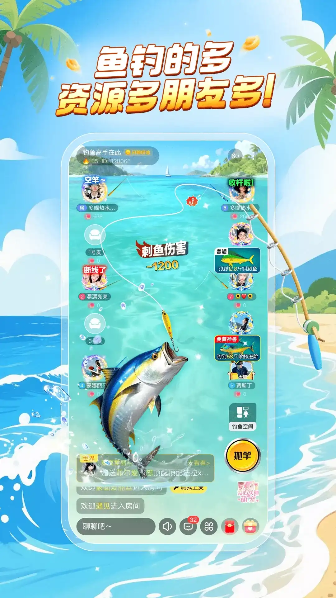 欢迎来到乐玩!一起乐享游戏社交,玩转交友新体验。通过乐玩,您可以轻松找到兴趣相投的朋友。乐玩推出与众不同的房间钓鱼新玩法,边聊边玩,帮助您更生动地表达情感和分享您的趣味瞬间。 【钓鱼甩竿 语聊新玩法】 娱乐互动、快速抛竿,和好友边钓鱼边互动。 乐玩开启的全新玩法,一起快乐钓大鱼,更有鱼场大比拼,体验新乐趣。 【语音派对 平台红包抢不停】 派对房、娱乐房、活动房,多种主题随心选择,更有官方红包助您快速提升人气值,帮您快速破冰畅聊。 【家族竞技 技能对阵】 家族打怪、家族对战、家族闯关,不同资源拿不停。旋风腿、点穴手一招治敌,升级技能一起集合打卡,团结一心捍卫家族荣耀,完成日常任务还可领取丰富游戏道具! 【找关系 亲密合拍】 找CP、师徒、结拜和跟班,建立个人专属关系。遇见趣味相投的同伴,在您开心或难过时,都有一批小伙伴在等您。轻松打造您的私人朋友圈。 来乐玩,感受与众不同的社交,为您打造更亲密、轻松和更好玩的社交体验。